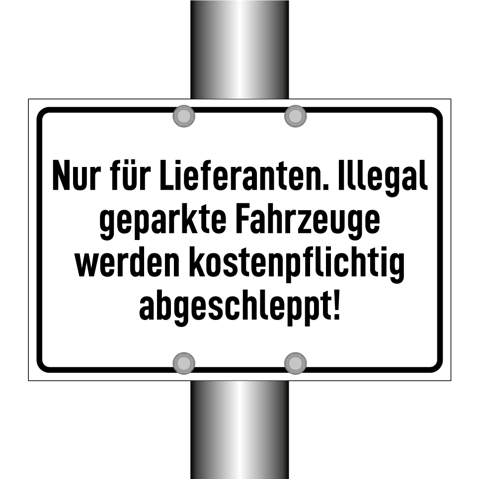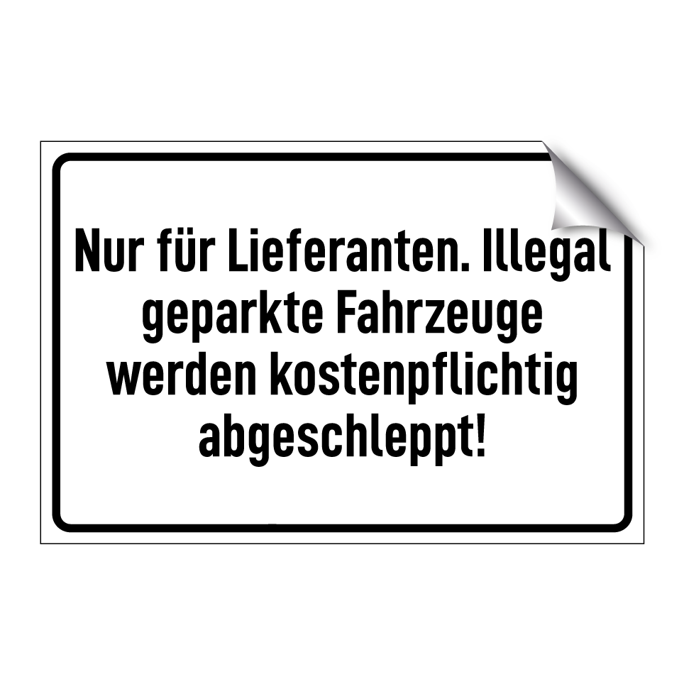 Nur für Lieferanten. Illegal geparkte Fahrzeuge werden kostenpflichtig abgeschleppt!