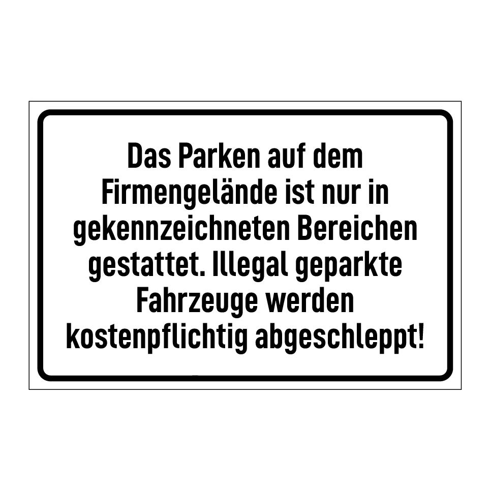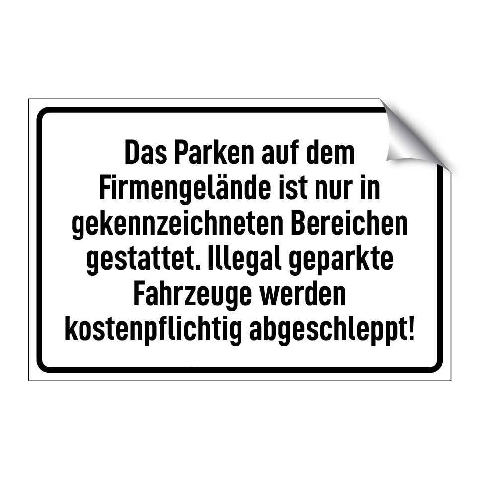 Op de categoriepagina's hieronder vindt u meer producten die lijken op Das Parken auf dem Firmengelände ist nur in gekennzeichneten Bereichen gestattet. Illegal geparkte Fahrzeuge werden kostenpflichtig abgeschleppt!. Klik hieronder om meer producten te ontdekken.