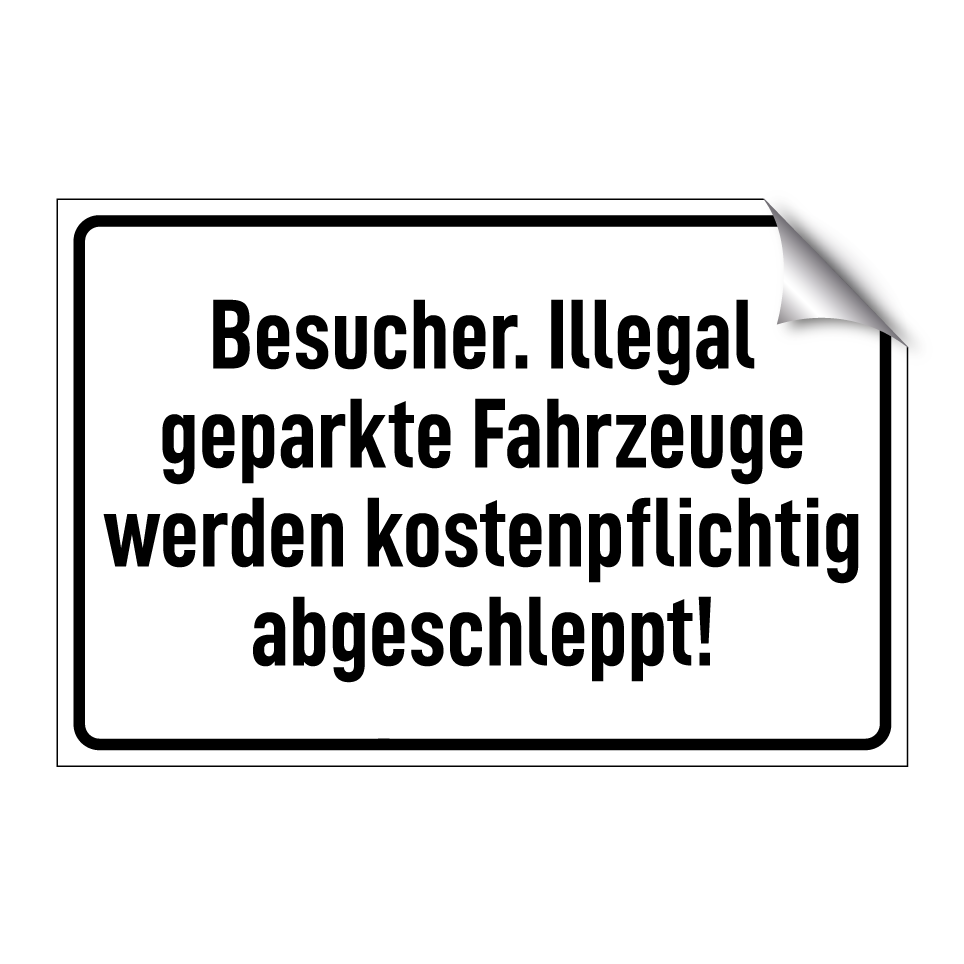 Op de categoriepagina's hieronder vindt u meer producten die lijken op Besucher. Illegal geparkte Fahrzeuge werden kostenpflichtig abgeschleppt!. Klik hieronder om meer producten te ontdekken.