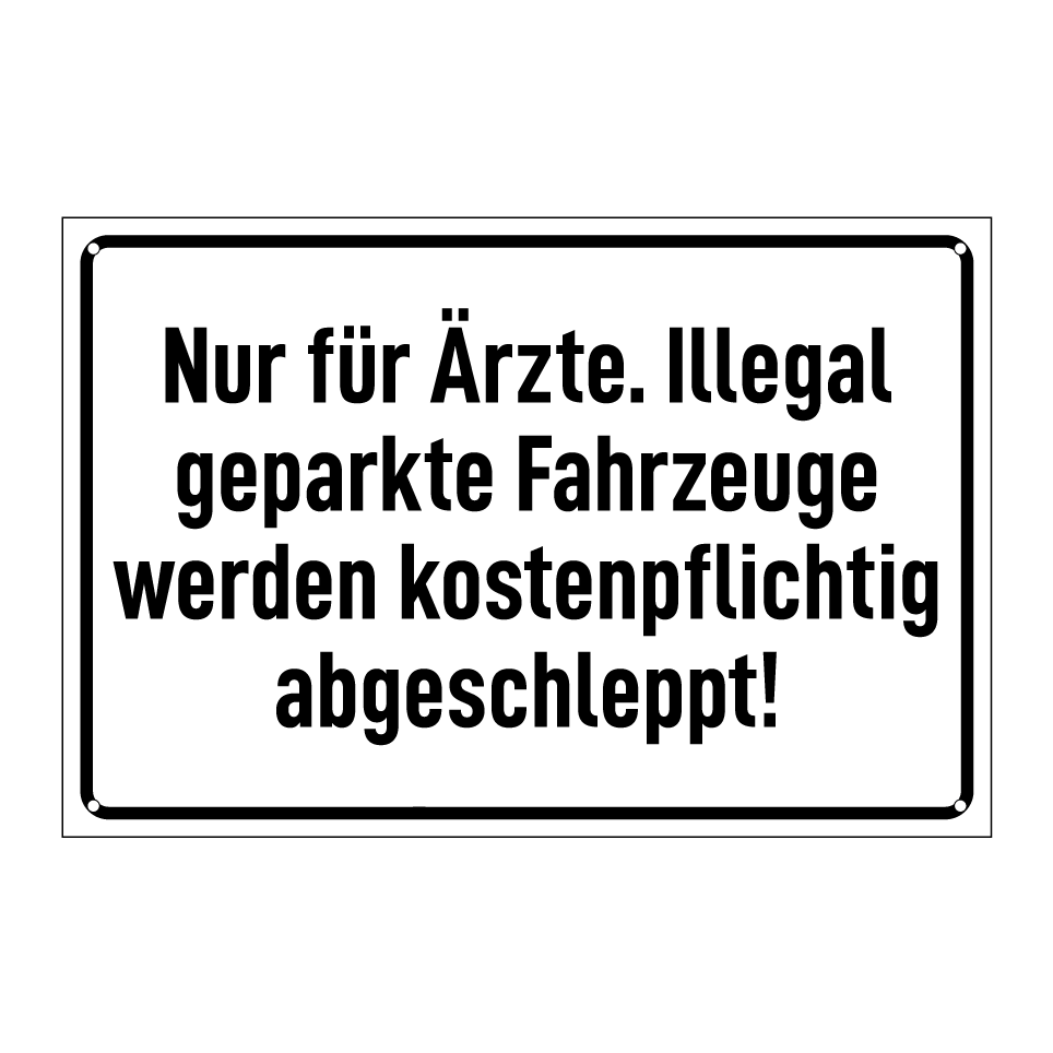 Nur für Ärzte. Illegal geparkte Fahrzeuge werden kostenpflichtig abgeschleppt!