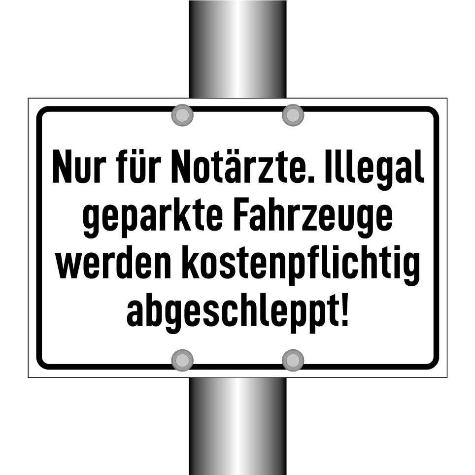 Nur für Notärzte. Illegal geparkte Fahrzeuge werden kostenpflichtig abgeschleppt!