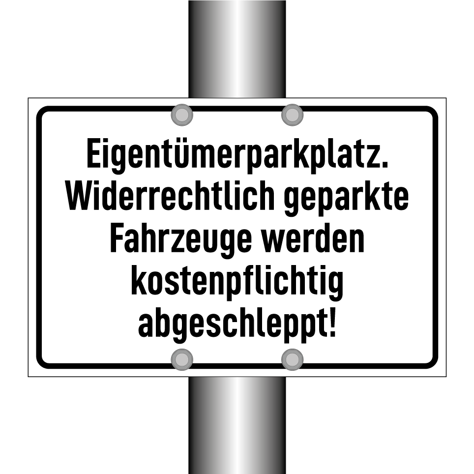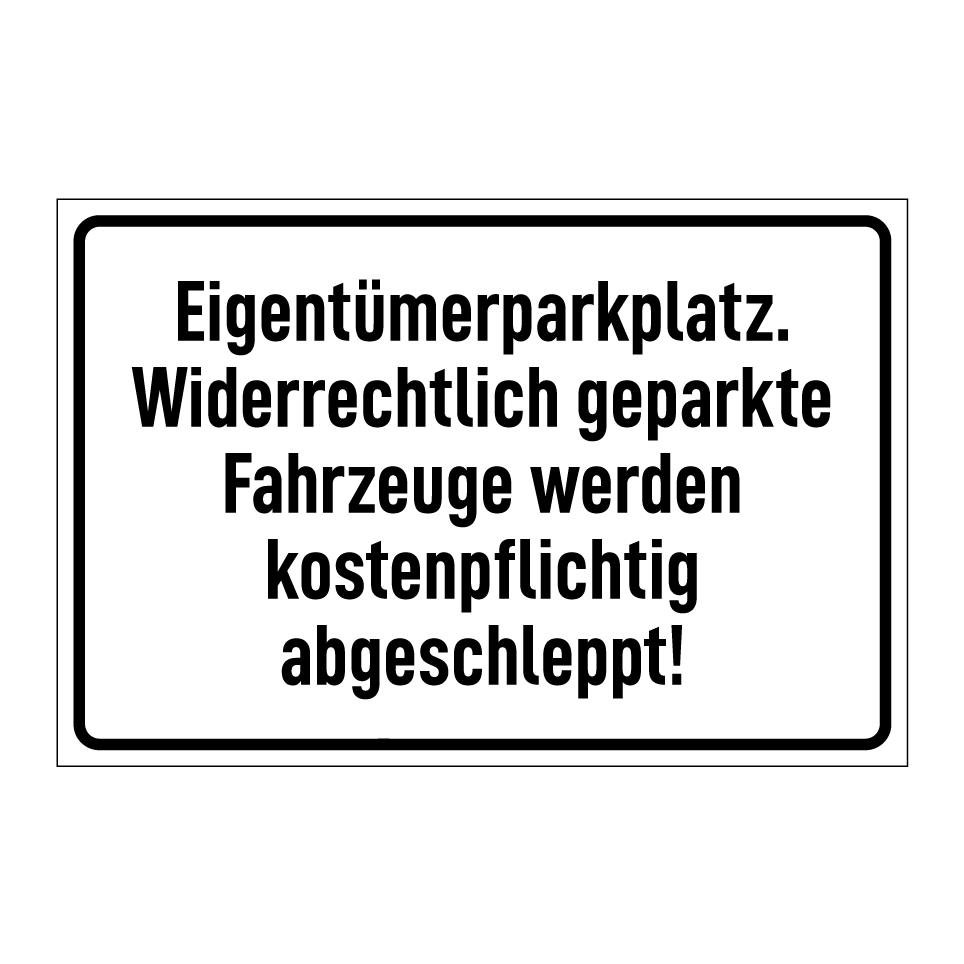 Eigentümerparkplatz. Widerrechtlich geparkte Fahrzeuge werden kostenpflichtig abgeschleppt!