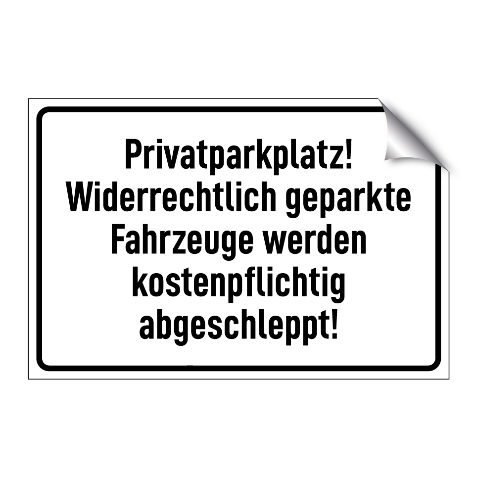 Privatparkplatz! Widerrechtlich geparkte Fahrzeuge werden kostenpflichtig abgeschleppt!
