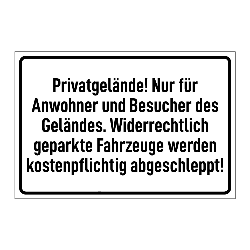 Op de categoriepagina's hieronder vindt u meer producten die lijken op Privatgelände! Nur für Anwohner und Besucher des Geländes. Widerrechtlich geparkte Fahrzeuge werden kostenpflichtig abgeschleppt!. Klik hieronder om meer producten te ontdekken.