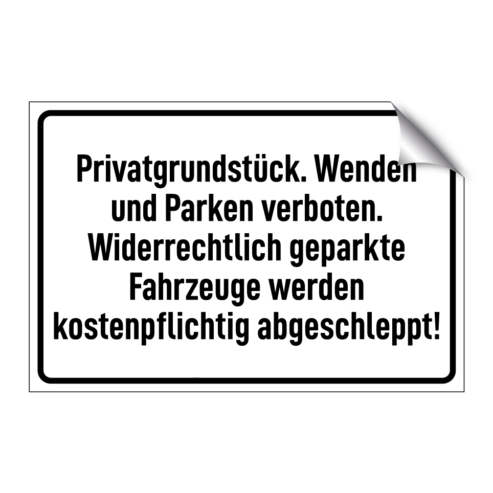 Op de categoriepagina's hieronder vindt u meer producten die lijken op Privatgrundstück. Wenden und Parken verboten. Widerrechtlich geparkte Fahrzeuge werden kostenpflichtig abgeschleppt!. Klik hieronder om meer producten te ontdekken.