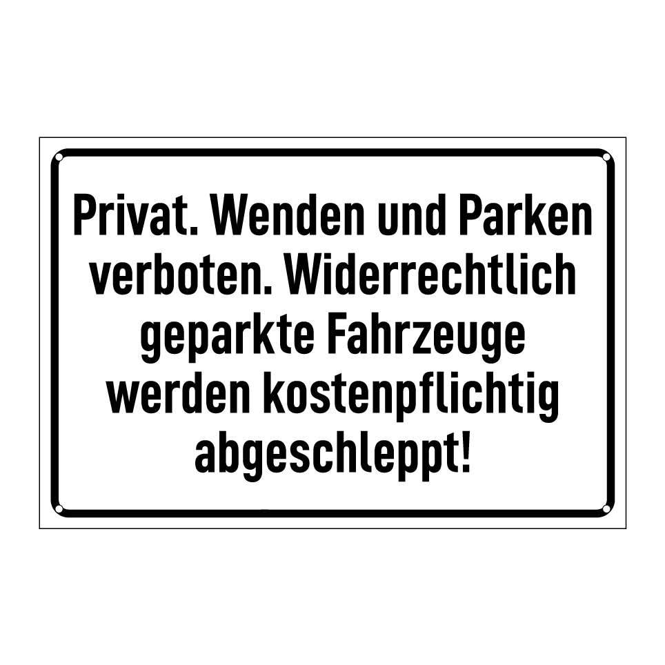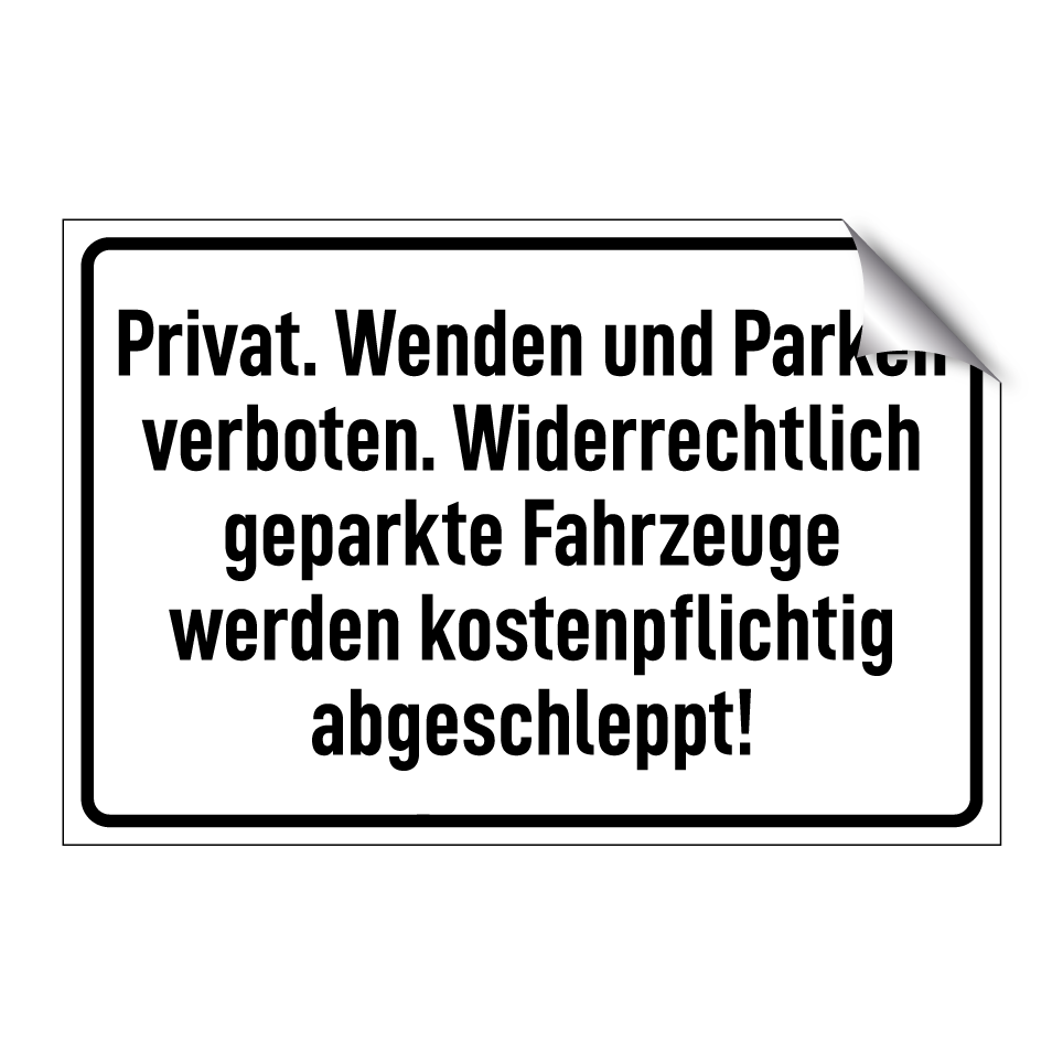Op de categoriepagina's hieronder vindt u meer producten die lijken op Privat. Wenden und Parken verboten. Widerrechtlich geparkte Fahrzeuge werden kostenpflichtig abgeschleppt!. Klik hieronder om meer producten te ontdekken.
