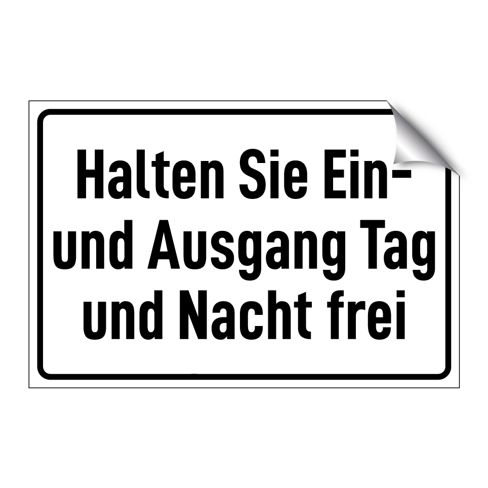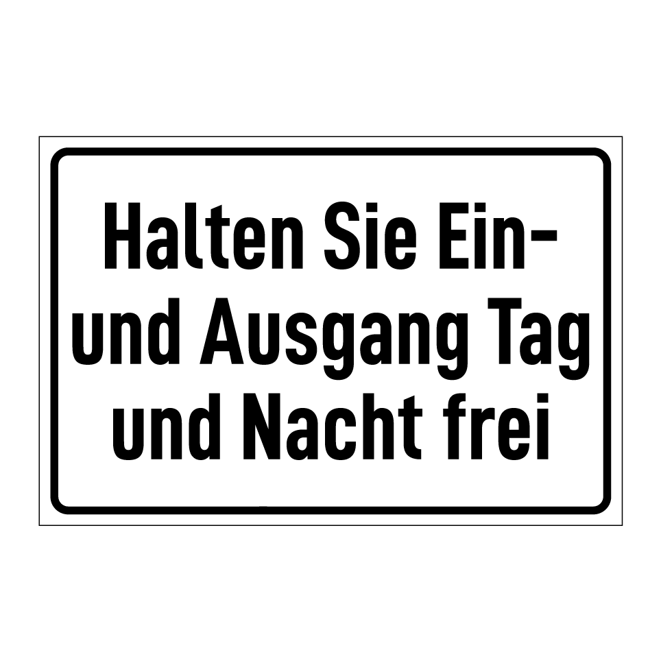 Halten Sie Ein- und Ausgang Tag und Nacht frei