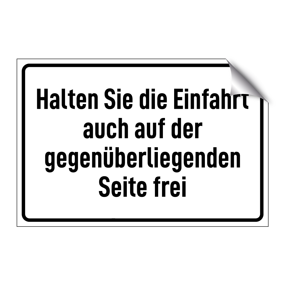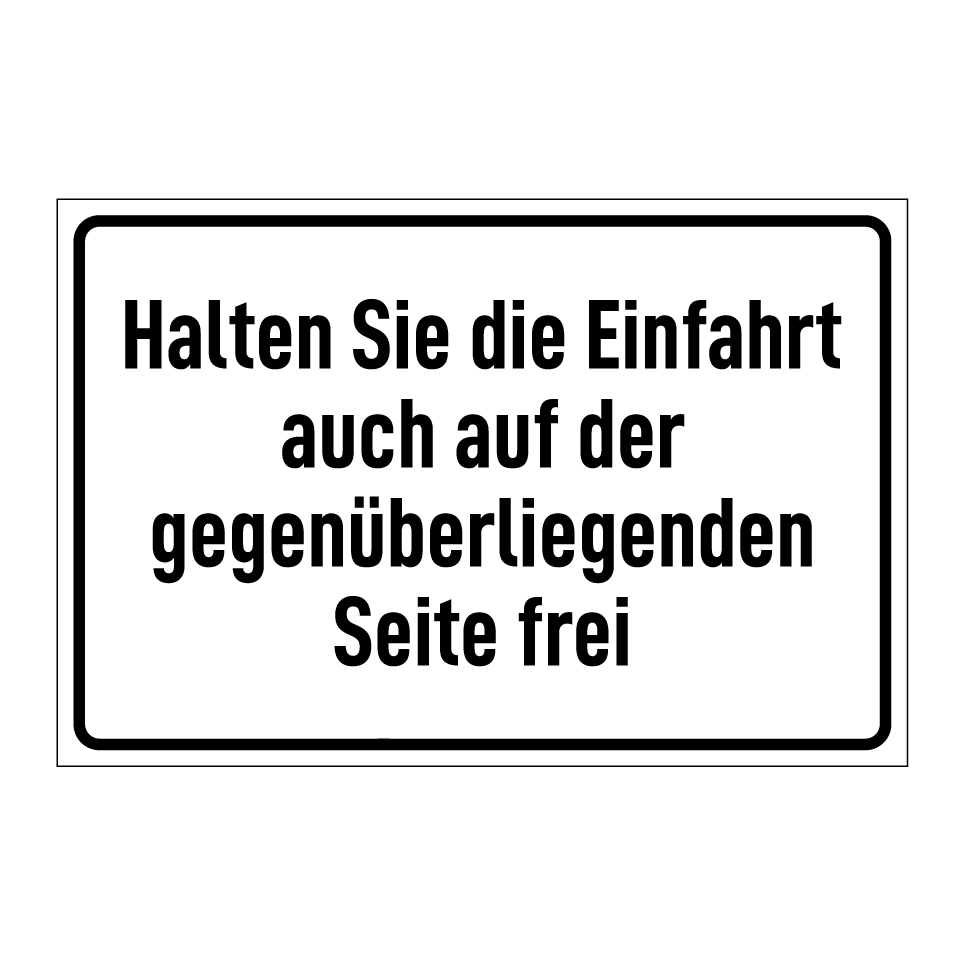 Halten Sie die Einfahrt auch auf der gegenüberliegenden Seite frei