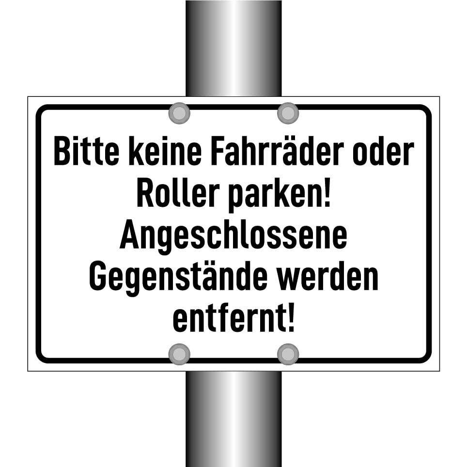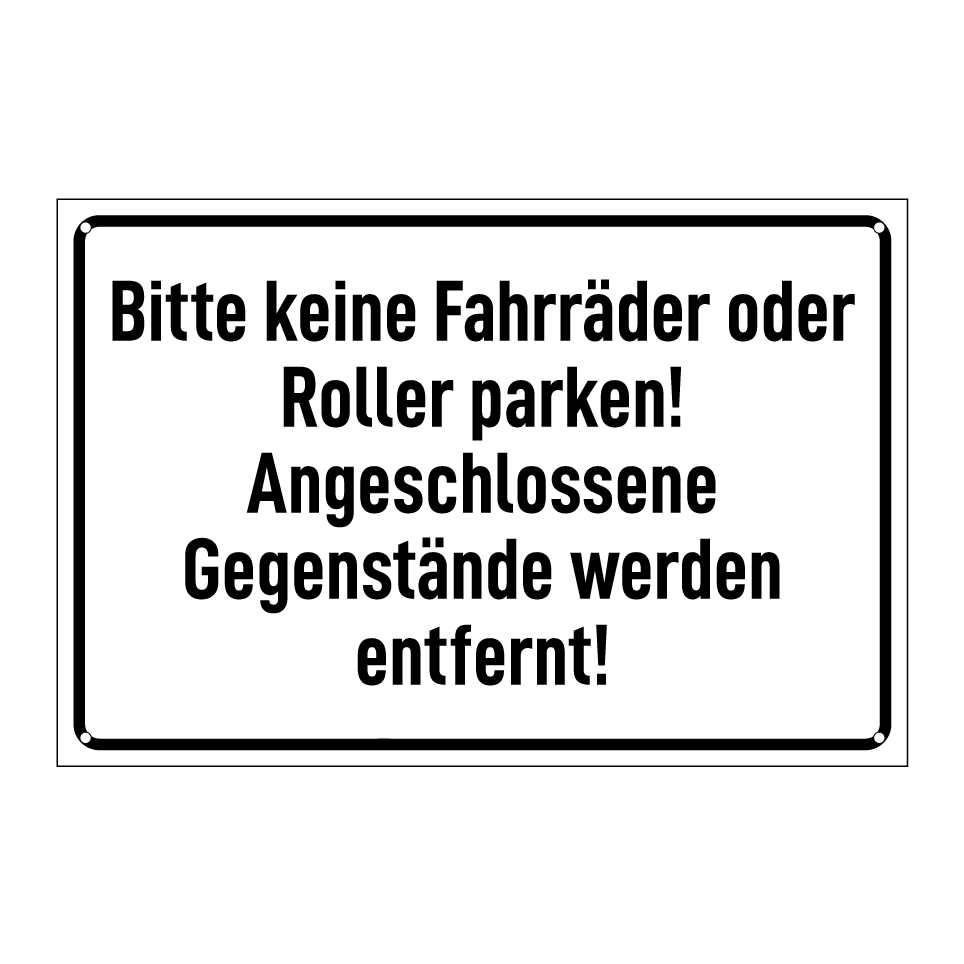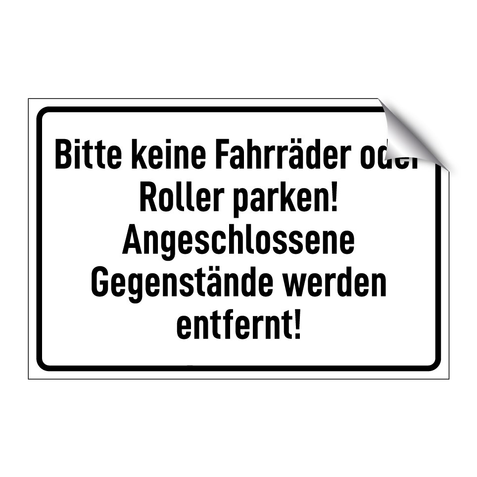 Bitte keine Fahrräder oder Roller parken! Angeschlossene Gegenstände werden entfernt!