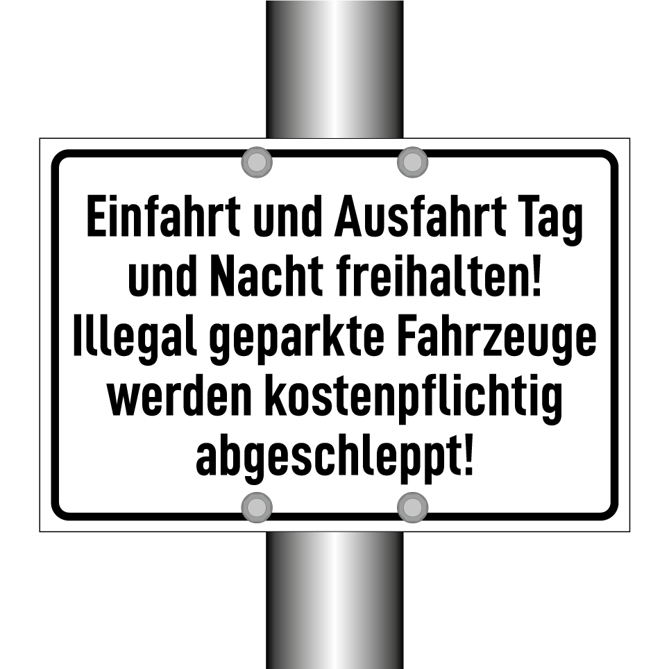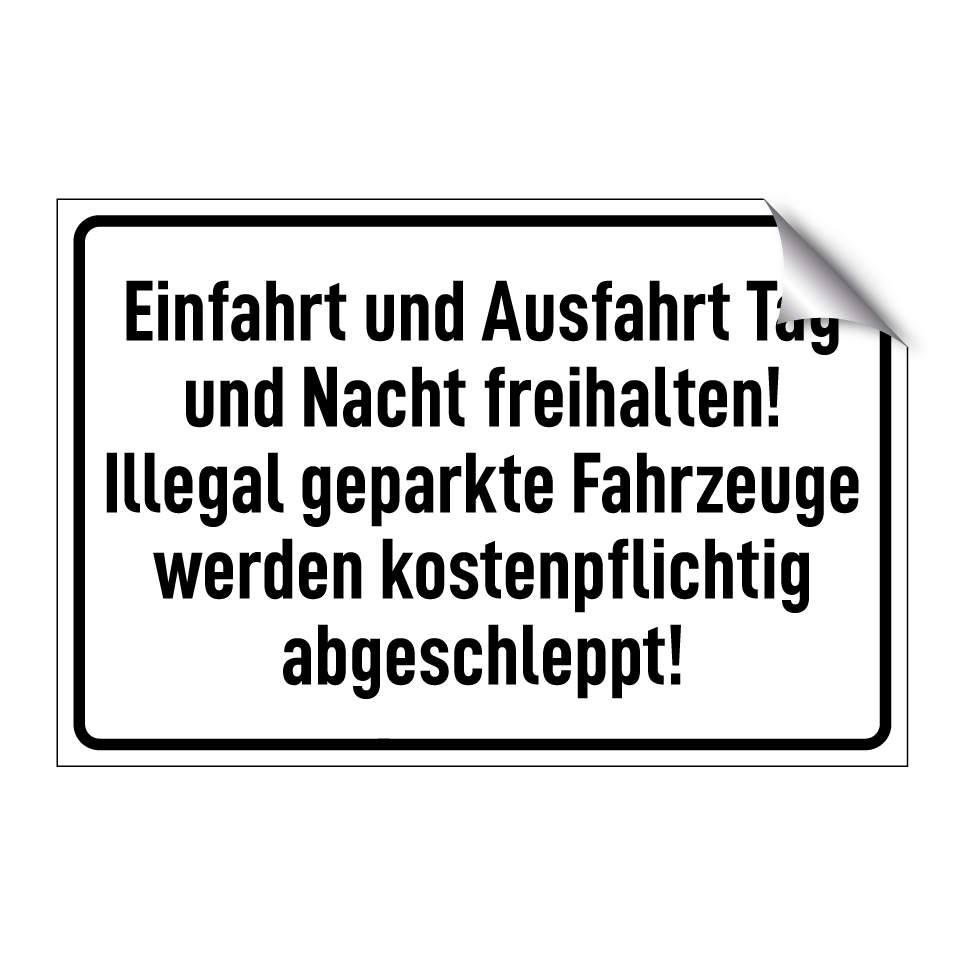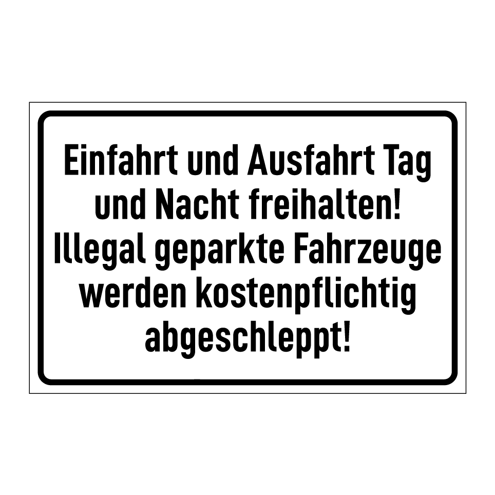 Einfahrt und Ausfahrt Tag und Nacht freihalten! Illegal geparkte Fahrzeuge werden kostenpflichtig abgeschleppt!