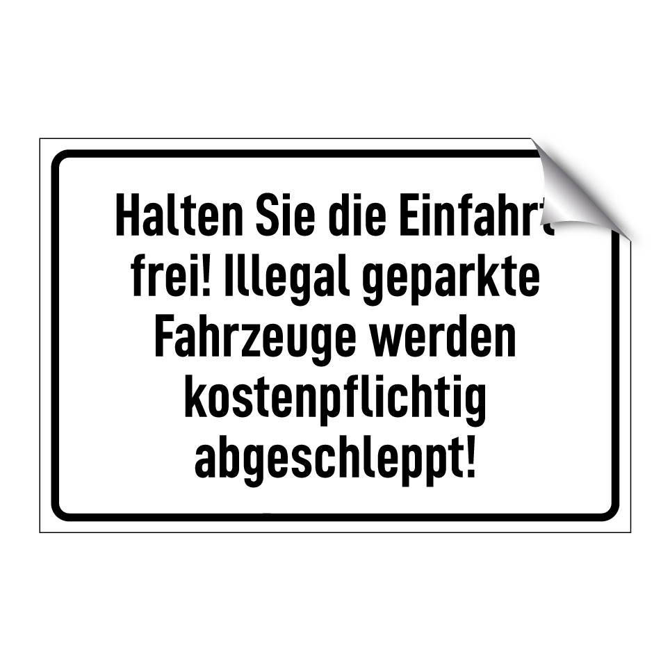 Halten Sie die Einfahrt frei! Illegal geparkte Fahrzeuge werden kostenpflichtig abgeschleppt!