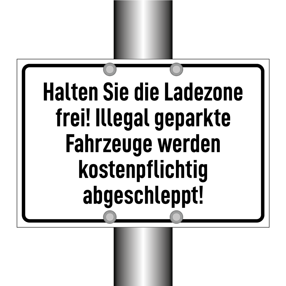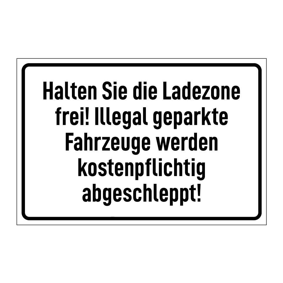 Halten Sie die Ladezone frei! Illegal geparkte Fahrzeuge werden kostenpflichtig abgeschleppt!