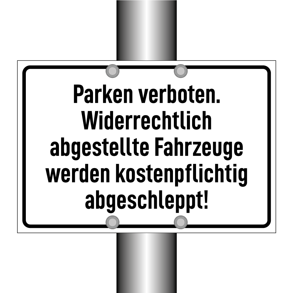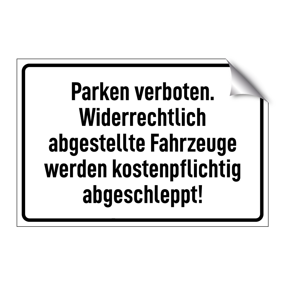 Parken verboten. Widerrechtlich abgestellte Fahrzeuge werden kostenpflichtig abgeschleppt!