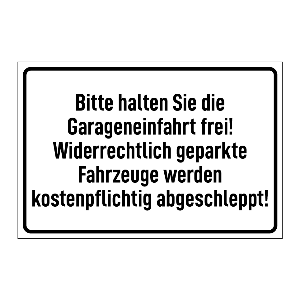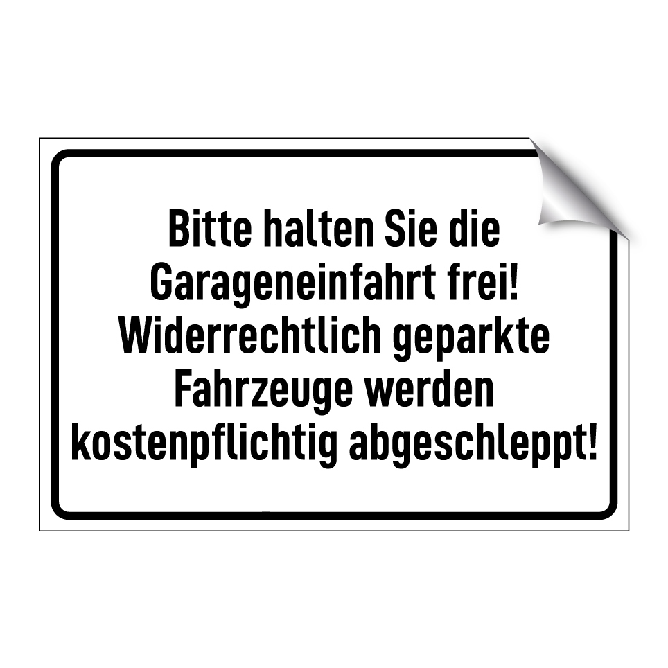 Op de categoriepagina's hieronder vindt u meer producten die lijken op Bitte halten Sie die Garageneinfahrt frei! Widerrechtlich geparkte Fahrzeuge werden kostenpflichtig abgeschleppt!. Klik hieronder om meer producten te ontdekken.