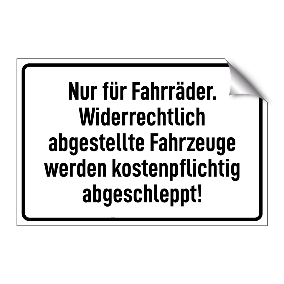 Op de categoriepagina's hieronder vindt u meer producten die lijken op Nur für Fahrräder. Widerrechtlich abgestellte Fahrzeuge werden kostenpflichtig abgeschleppt!. Klik hieronder om meer producten te ontdekken.