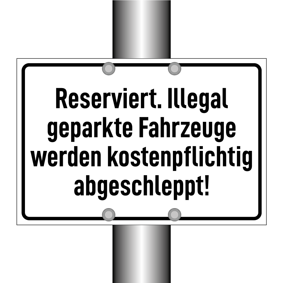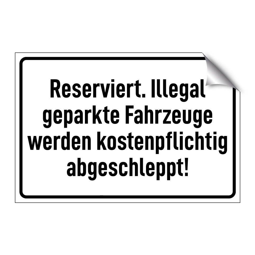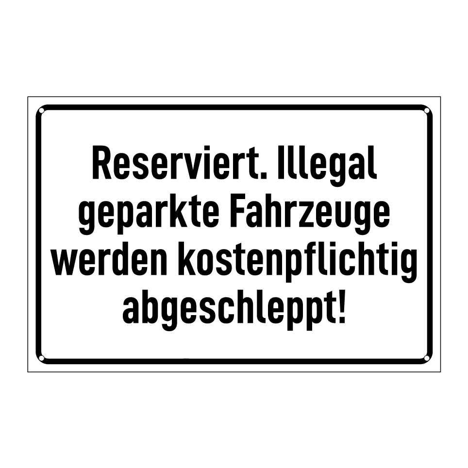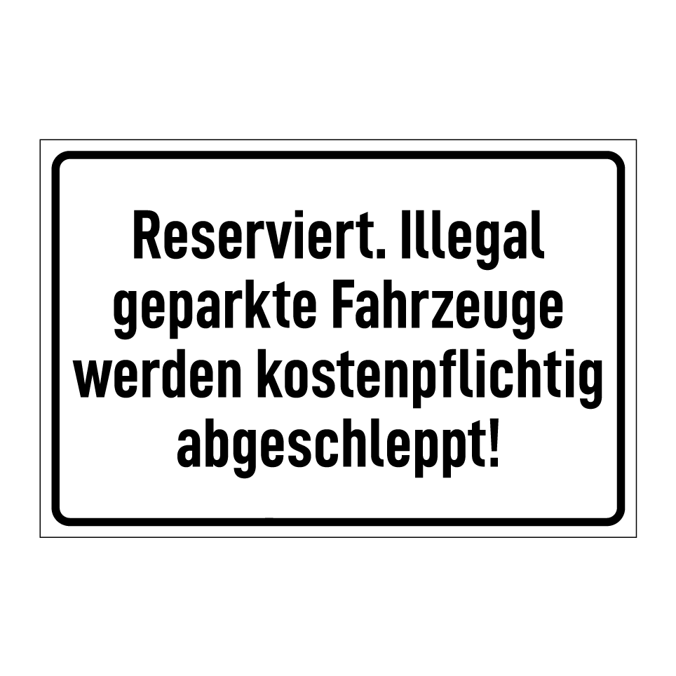 Reserviert. Illegal geparkte Fahrzeuge werden kostenpflichtig abgeschleppt!