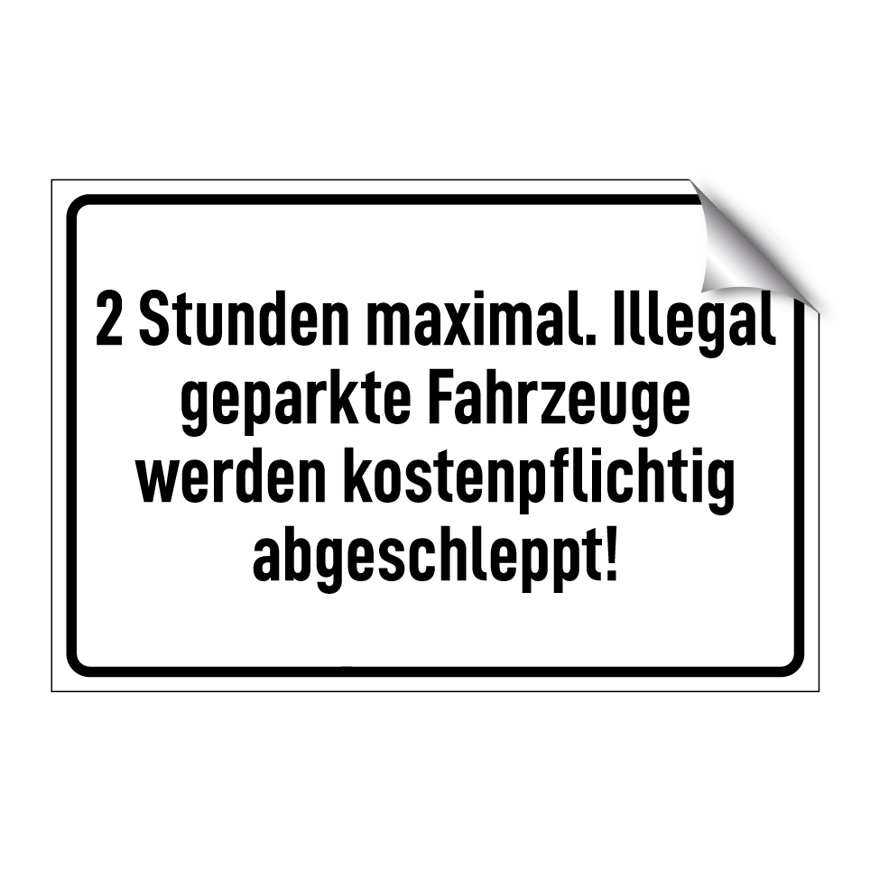 Op de categoriepagina's hieronder vindt u meer producten die lijken op 2 Stunden maximal. Illegal geparkte Fahrzeuge werden kostenpflichtig abgeschleppt!. Klik hieronder om meer producten te ontdekken.