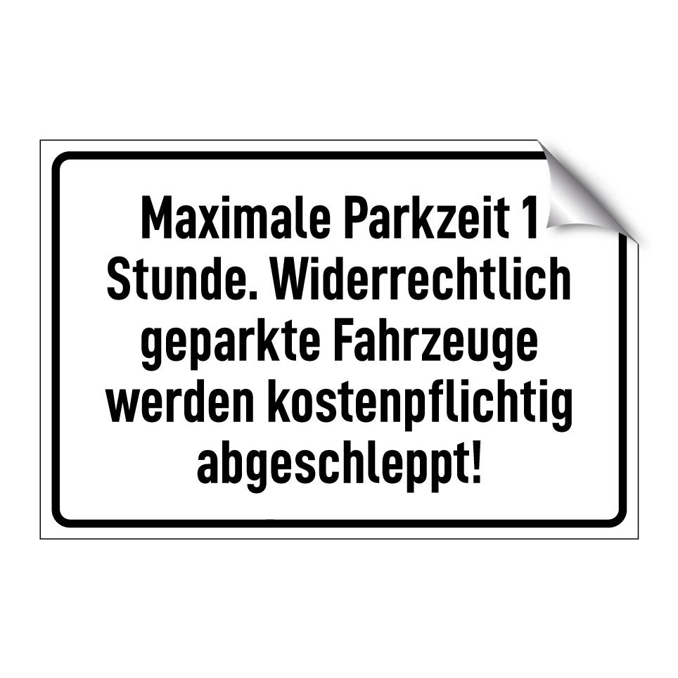 Op de categoriepagina's hieronder vindt u meer producten die lijken op Maximale Parkzeit 1 Stunde. Widerrechtlich geparkte Fahrzeuge werden kostenpflichtig abgeschleppt!. Klik hieronder om meer producten te ontdekken.