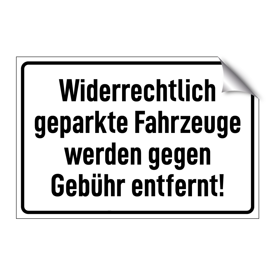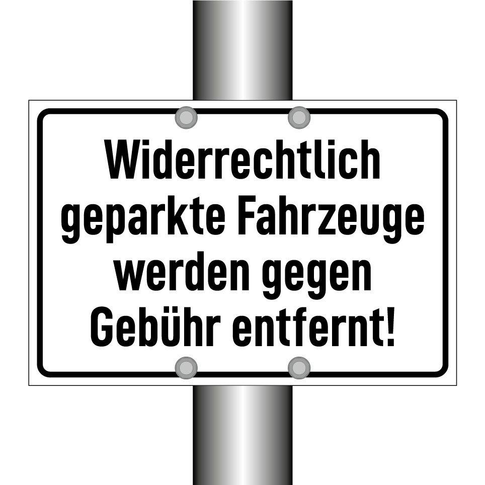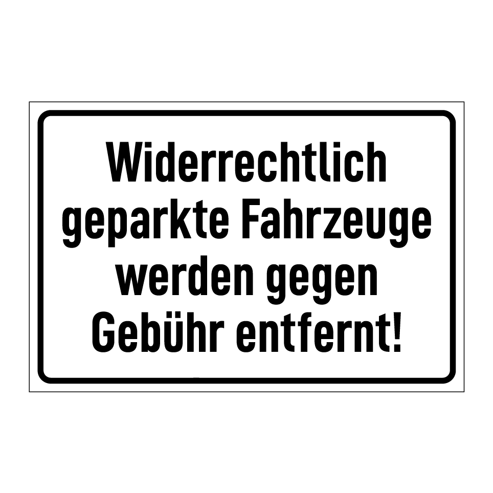 Widerrechtlich geparkte Fahrzeuge werden gegen Gebühr entfernt!