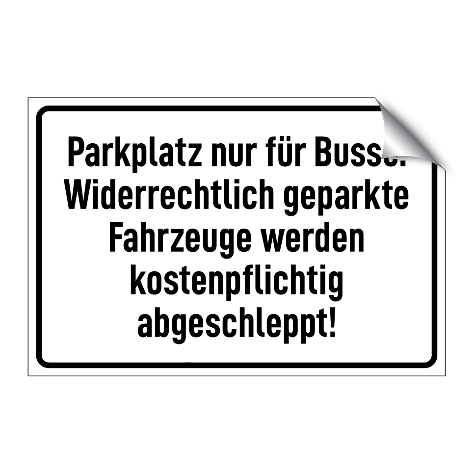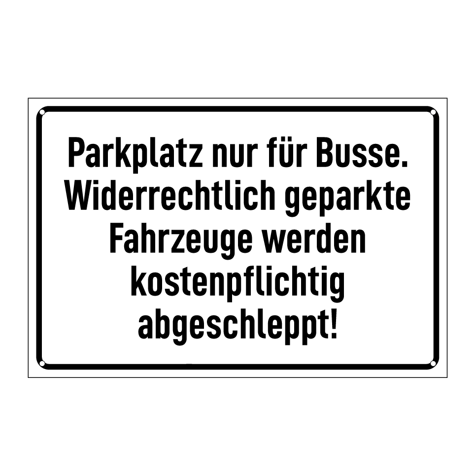 Parkplatz nur für Busse. Widerrechtlich geparkte Fahrzeuge werden kostenpflichtig abgeschleppt!