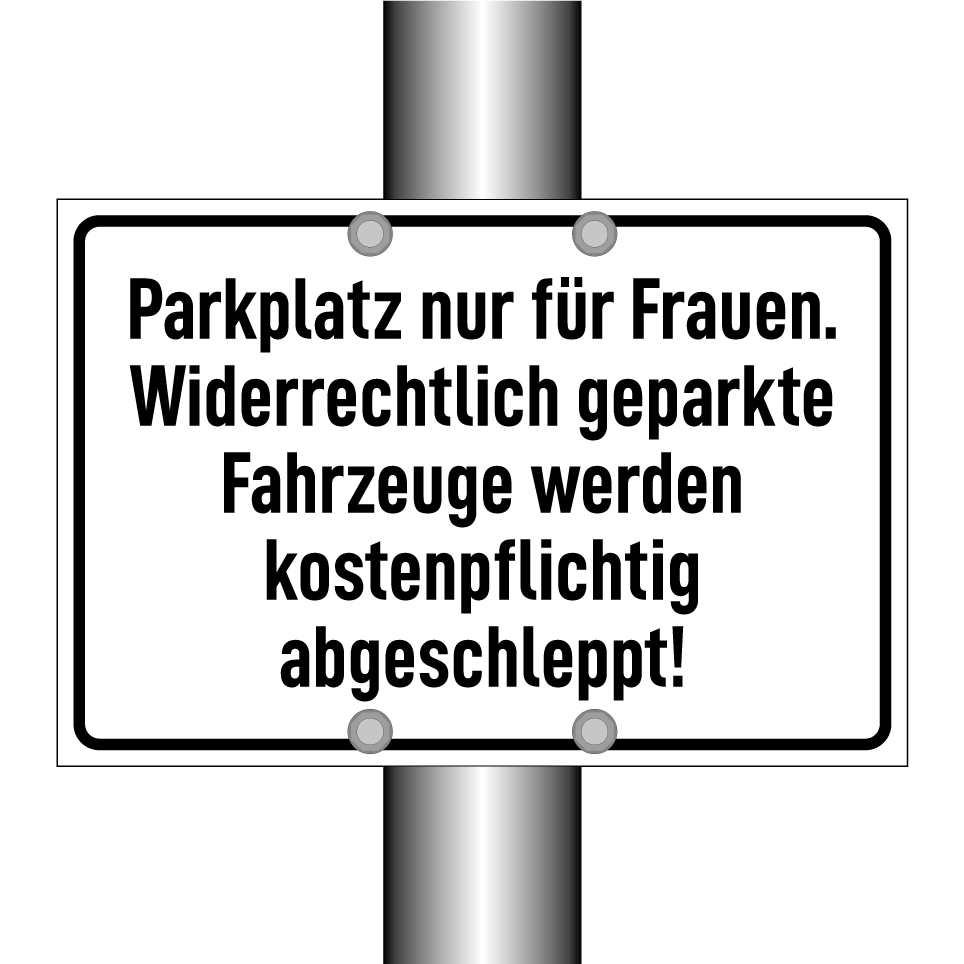 Parkplatz nur für Frauen. Widerrechtlich geparkte Fahrzeuge werden kostenpflichtig abgeschleppt!