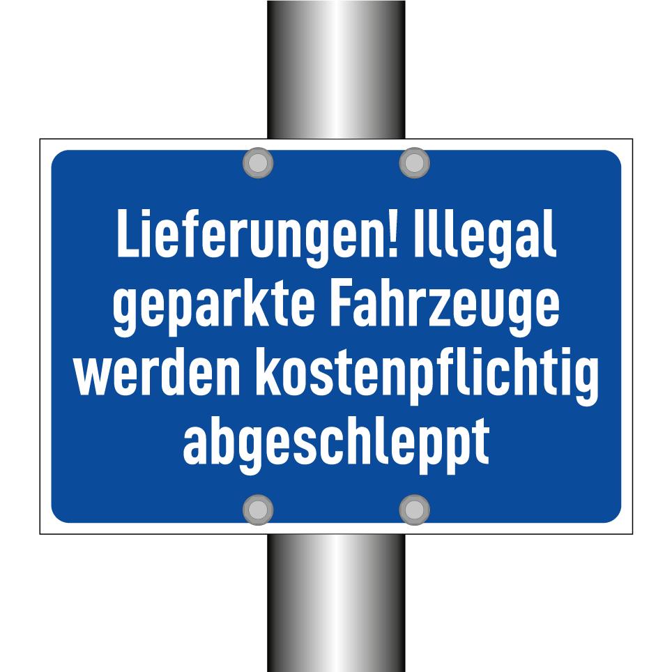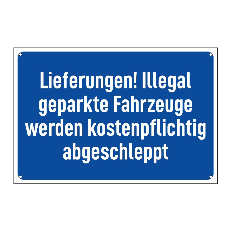 Lieferungen! Illegal geparkte Fahrzeuge werden kostenpflichtig abgeschleppt