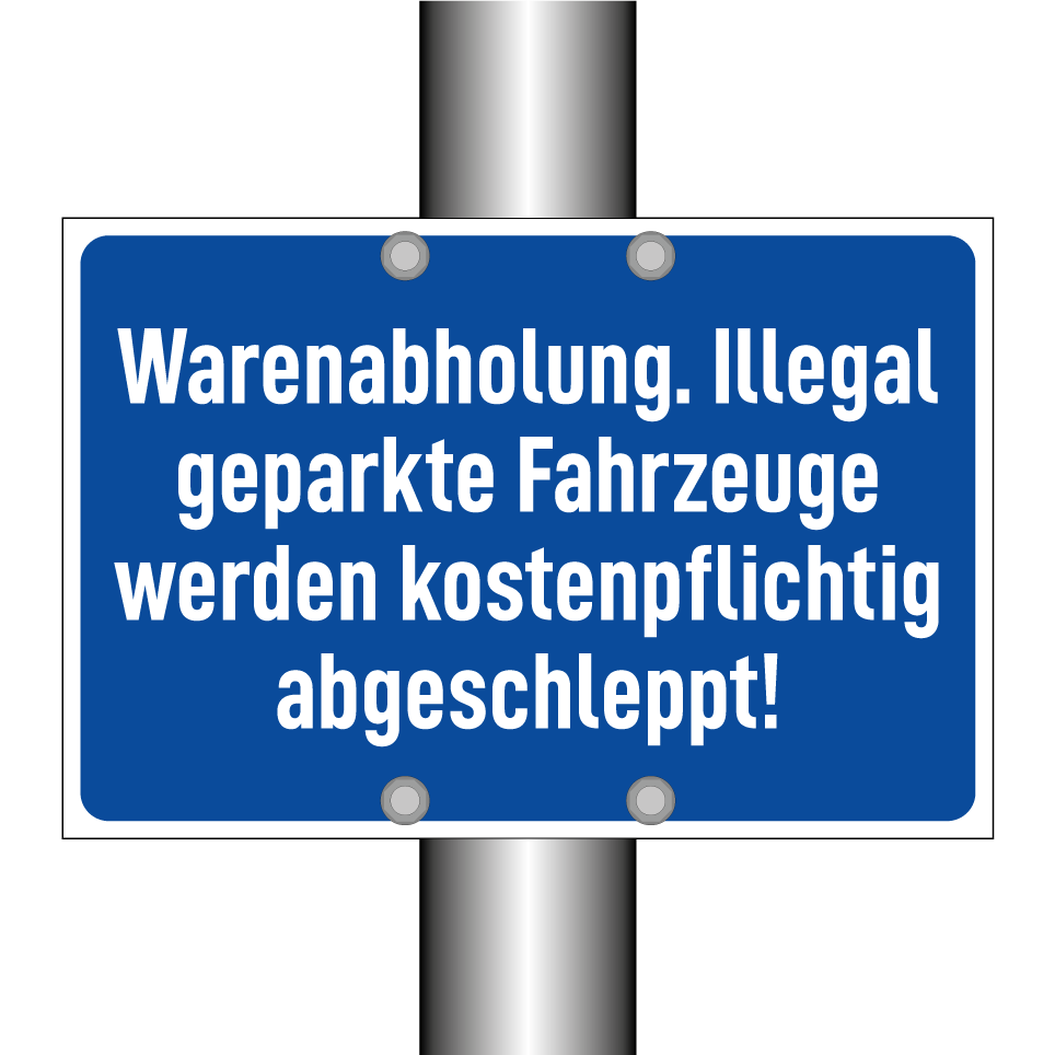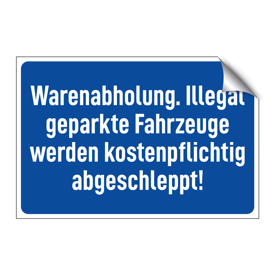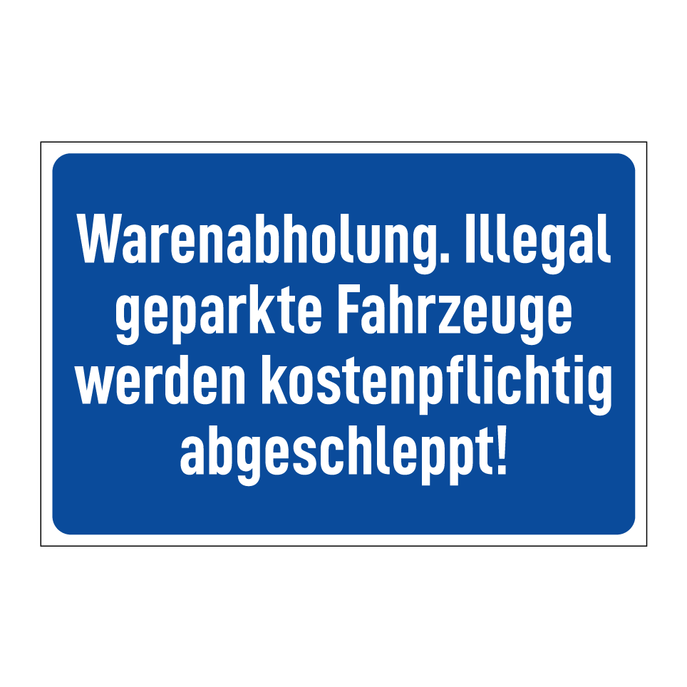 Warenabholung. Illegal geparkte Fahrzeuge werden kostenpflichtig abgeschleppt!