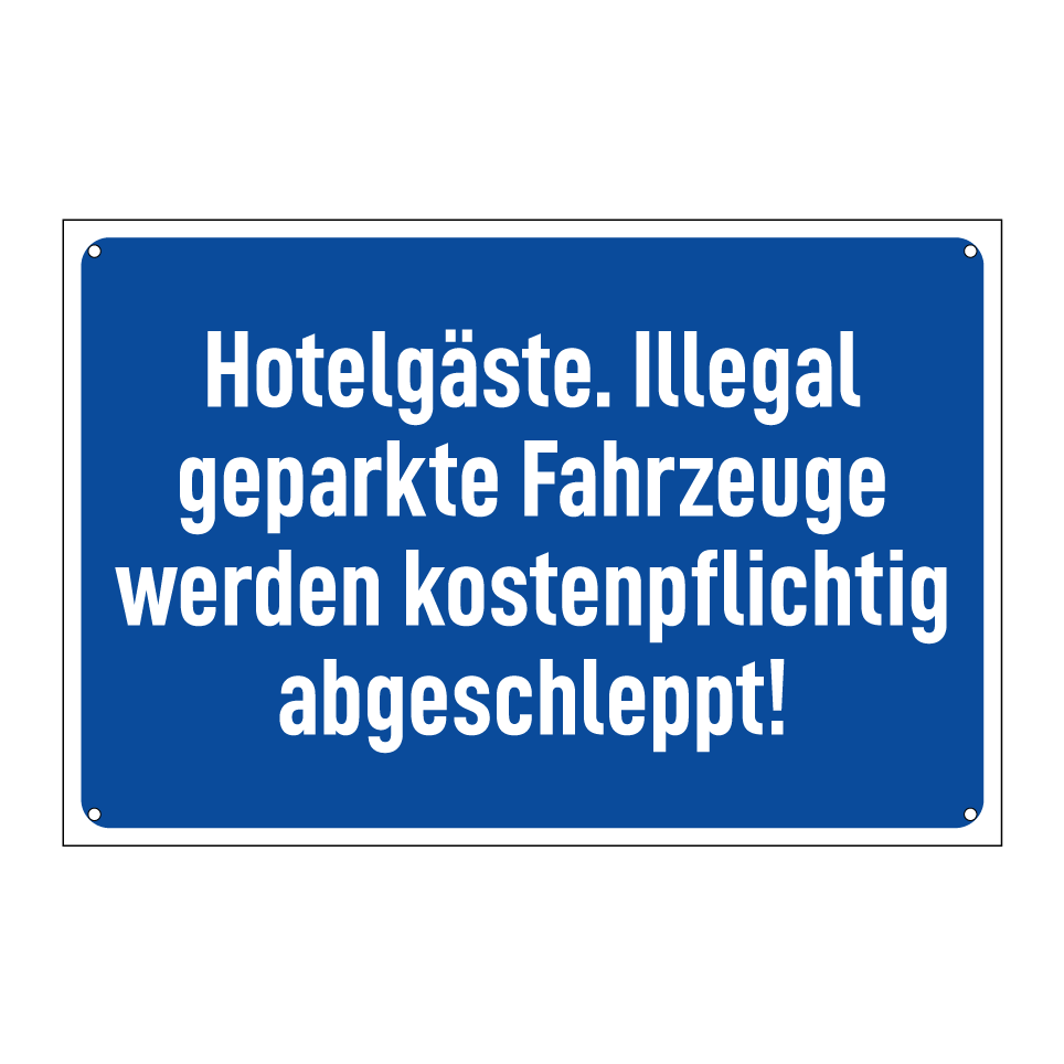 Hotelgäste. Illegal geparkte Fahrzeuge werden kostenpflichtig abgeschleppt!