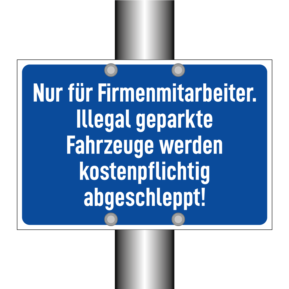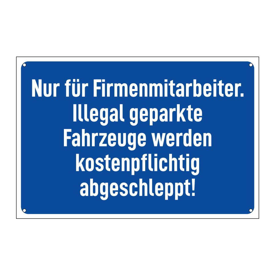 Op de categoriepagina's hieronder vindt u meer producten die lijken op Nur für Firmenmitarbeiter. Illegal geparkte Fahrzeuge werden kostenpflichtig abgeschleppt!. Klik hieronder om meer producten te ontdekken.
