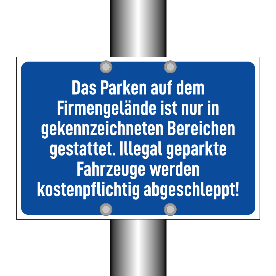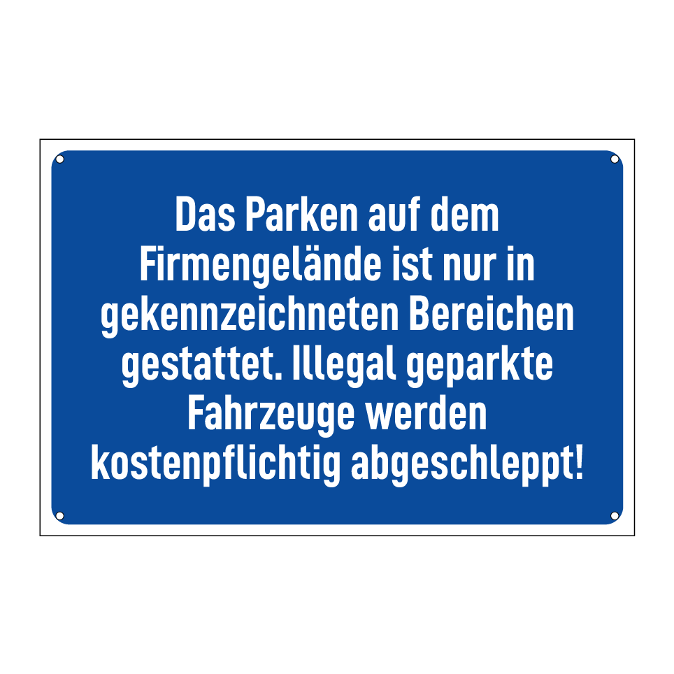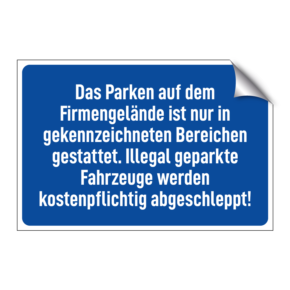 Op de categoriepagina's hieronder vindt u meer producten die lijken op Das Parken auf dem Firmengelände ist nur in gekennzeichneten Bereichen gestattet. Illegal geparkte Fahrzeuge werden kostenpflichtig abgeschleppt!. Klik hieronder om meer producten te ontdekken.