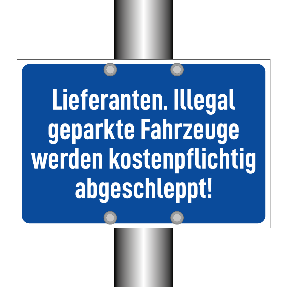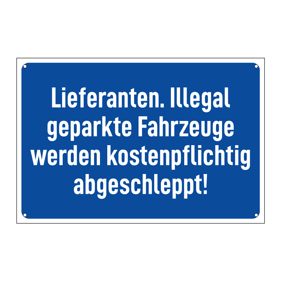 Lieferanten. Illegal geparkte Fahrzeuge werden kostenpflichtig abgeschleppt!