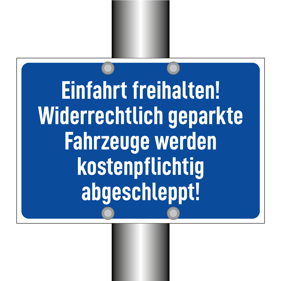 Einfahrt freihalten! Widerrechtlich geparkte Fahrzeuge werden kostenpflichtig abgeschleppt!