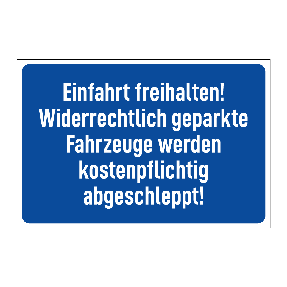Op de categoriepagina's hieronder vindt u meer producten die lijken op Einfahrt freihalten! Widerrechtlich geparkte Fahrzeuge werden kostenpflichtig abgeschleppt!. Klik hieronder om meer producten te ontdekken.
