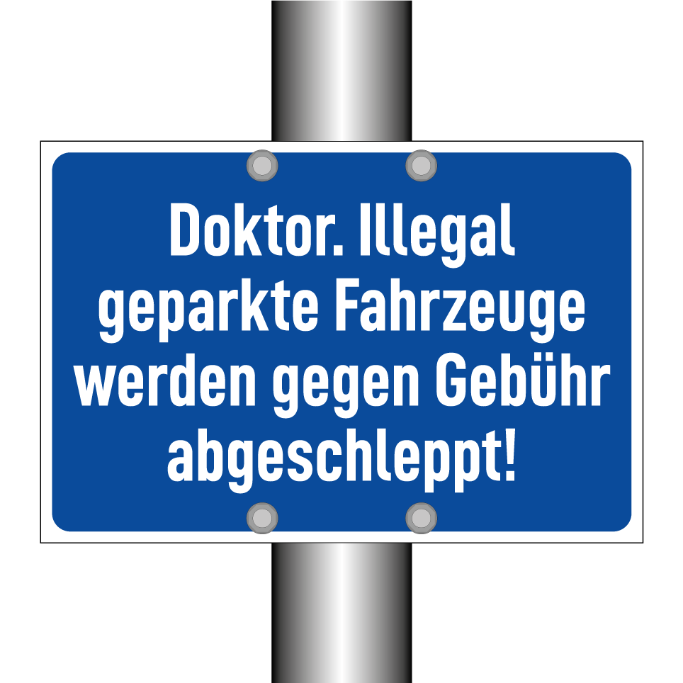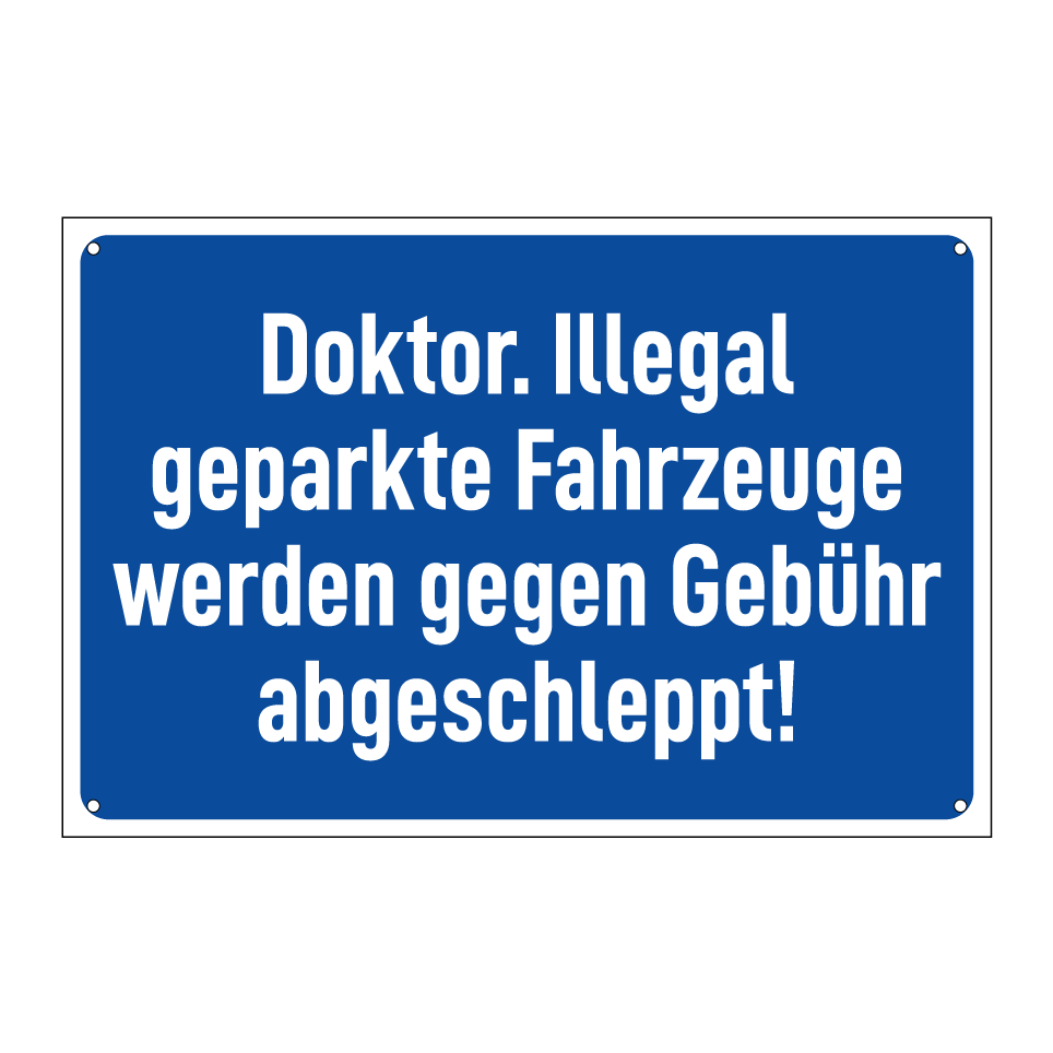 Doktor. Illegal geparkte Fahrzeuge werden gegen Gebühr abgeschleppt!