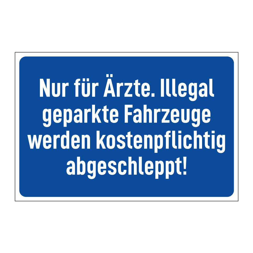 Nur für Ärzte. Illegal geparkte Fahrzeuge werden kostenpflichtig abgeschleppt!