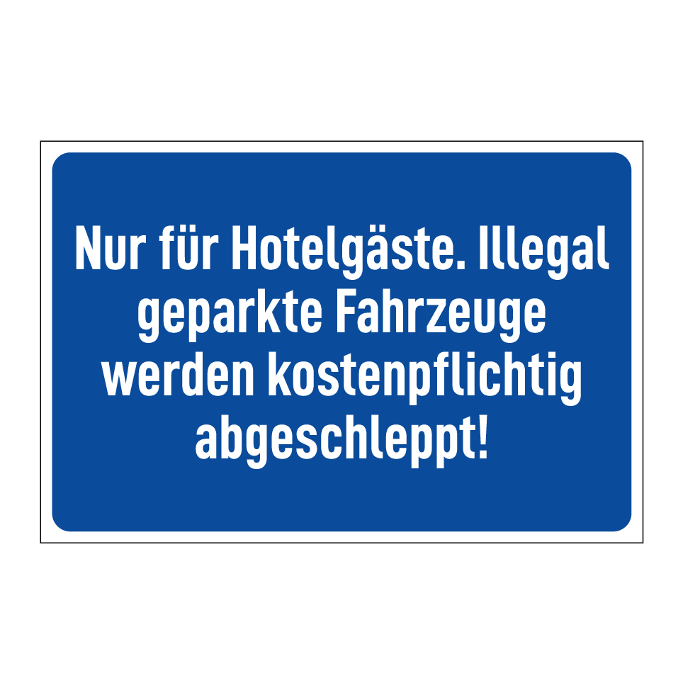 Op de categoriepagina's hieronder vindt u meer producten die lijken op Nur für Hotelgäste. Illegal geparkte Fahrzeuge werden kostenpflichtig abgeschleppt!. Klik hieronder om meer producten te ontdekken.