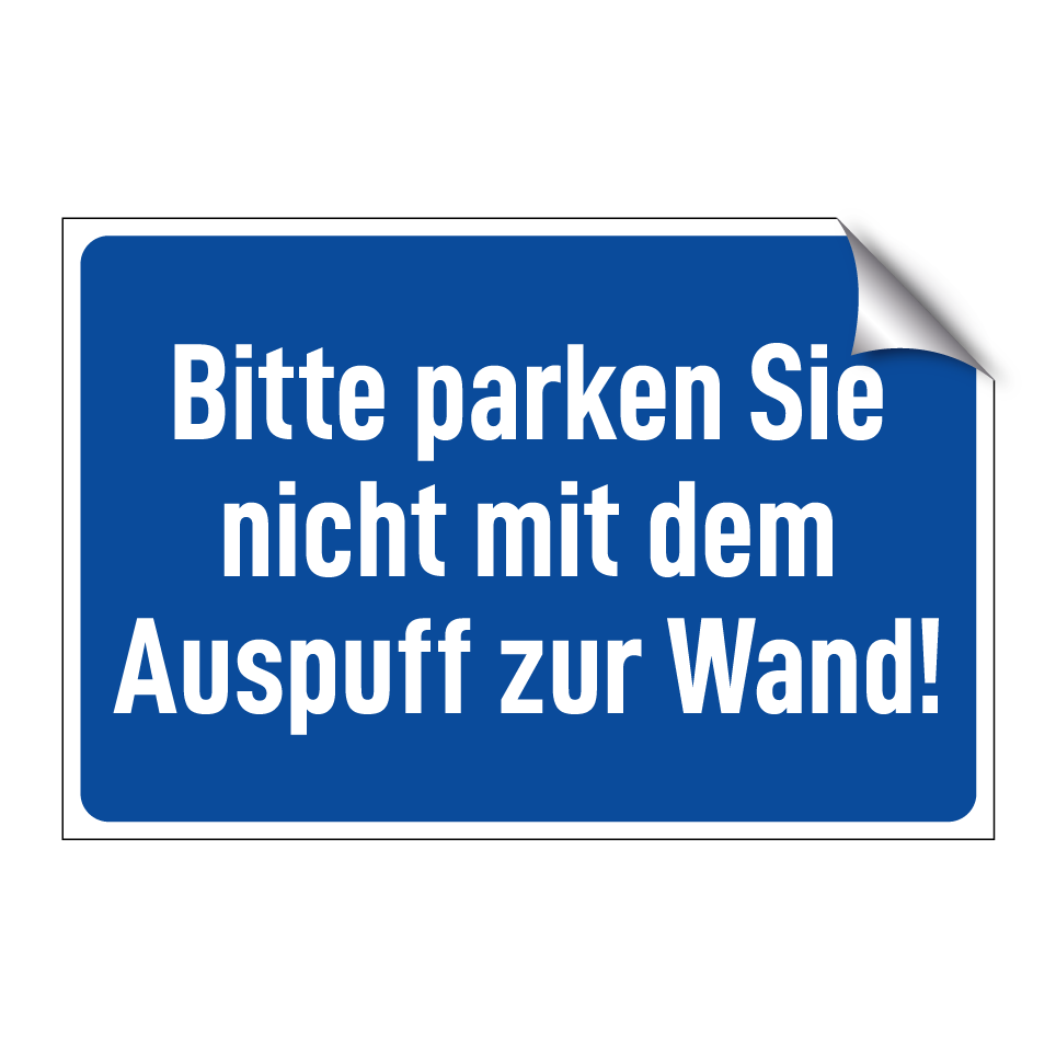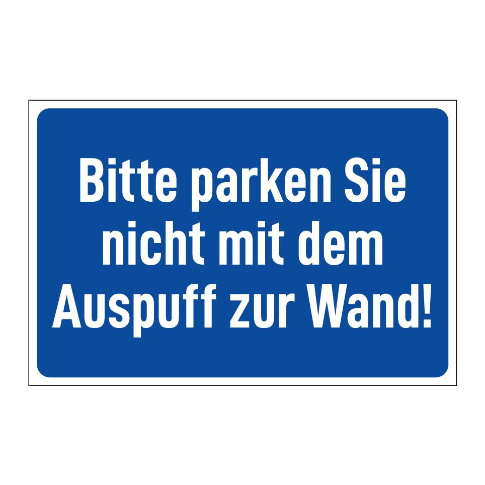 Bitte parken Sie nicht mit dem Auspuff zur Wand!