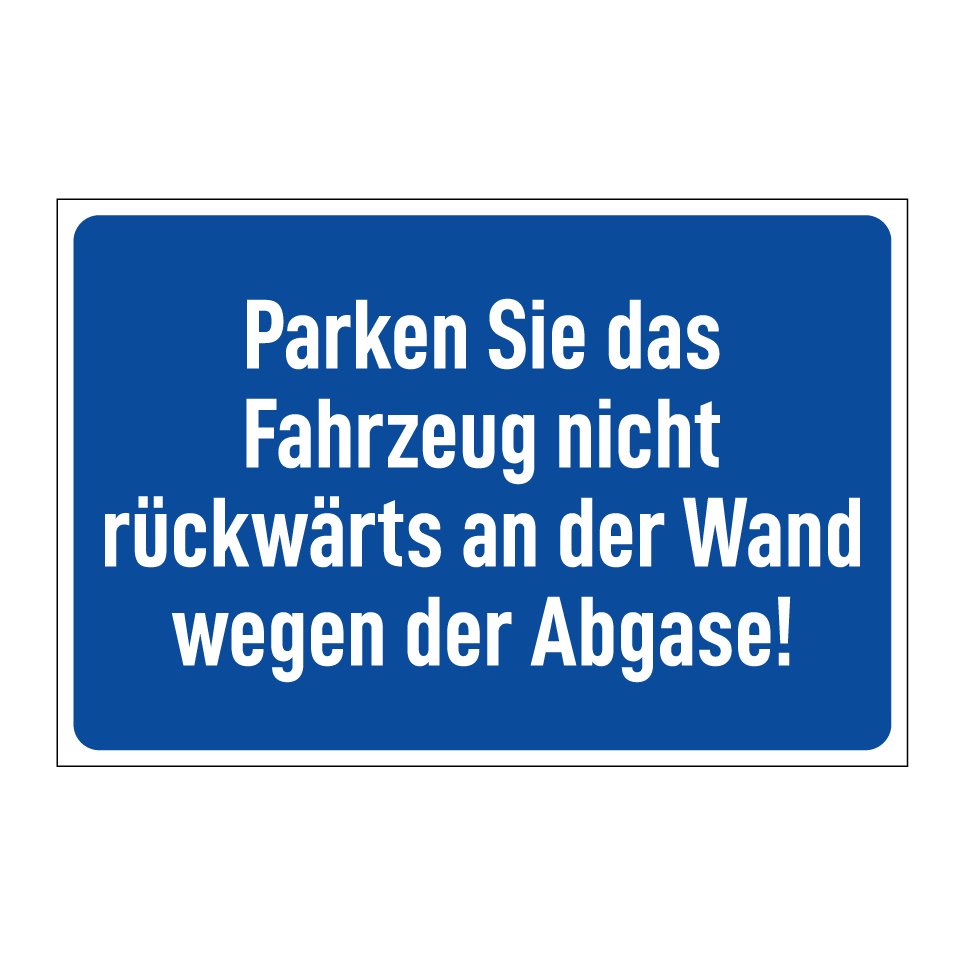 Parken Sie das Fahrzeug nicht rückwärts an der Wand wegen der Abgase!