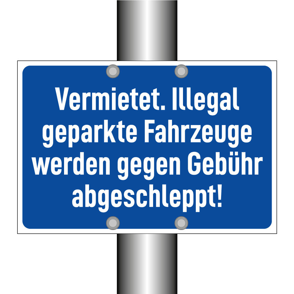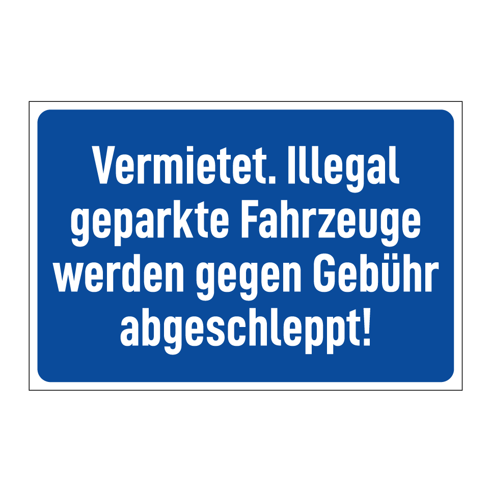Vermietet. Illegal geparkte Fahrzeuge werden gegen Gebühr abgeschleppt!