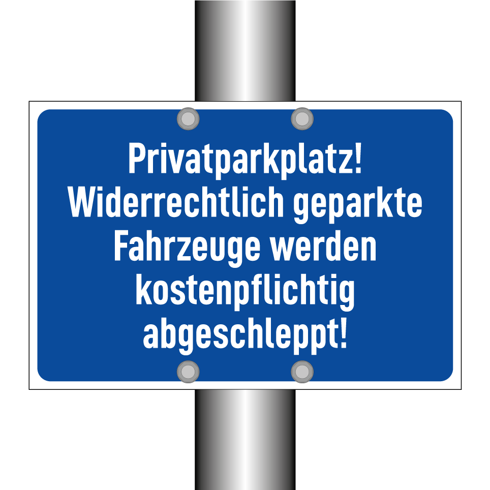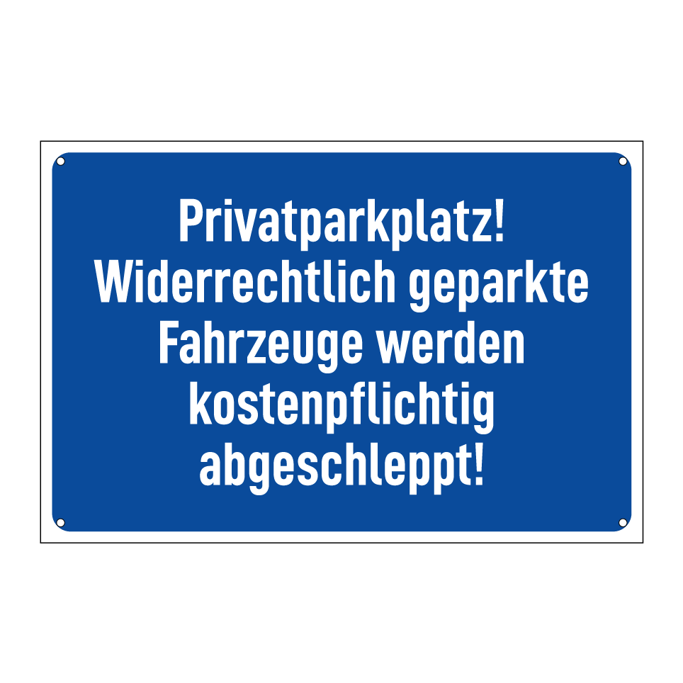 Privatparkplatz! Widerrechtlich geparkte Fahrzeuge werden kostenpflichtig abgeschleppt!