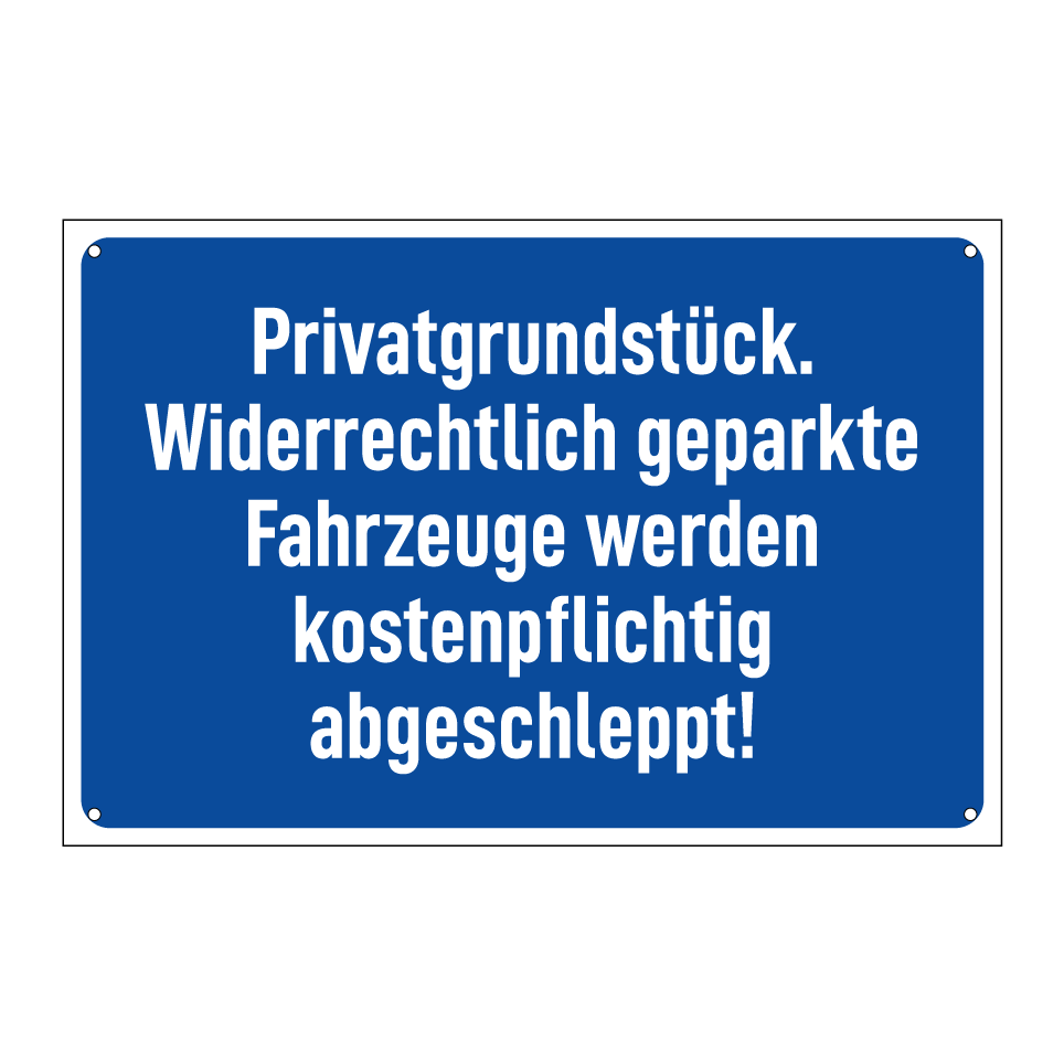 Privatgrundstück. Widerrechtlich geparkte Fahrzeuge werden kostenpflichtig abgeschleppt!