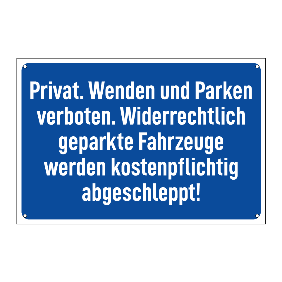 Op de categoriepagina's hieronder vindt u meer producten die lijken op Privat. Wenden und Parken verboten. Widerrechtlich geparkte Fahrzeuge werden kostenpflichtig abgeschleppt!. Klik hieronder om meer producten te ontdekken.