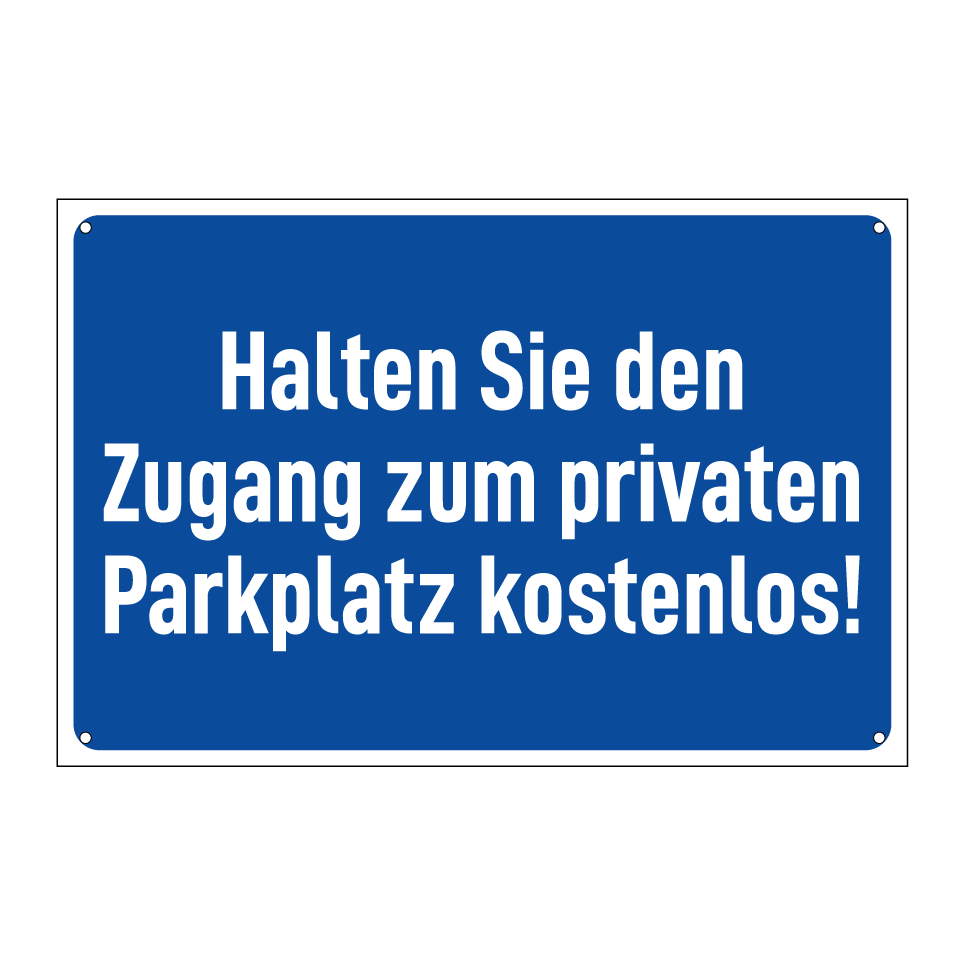 Halten Sie den Zugang zum privaten Parkplatz kostenlos!