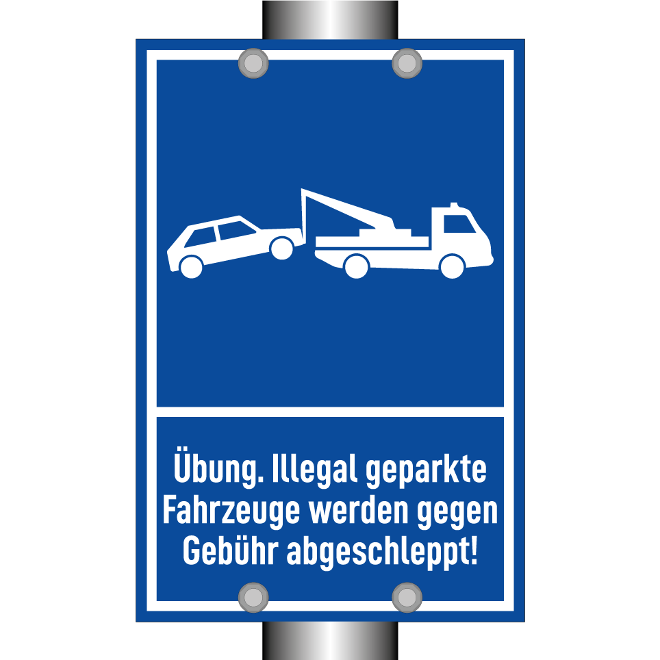 Übung. Illegal geparkte Fahrzeuge werden gegen Gebühr abgeschleppt!