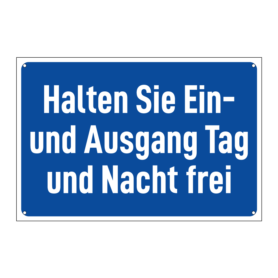 Halten Sie Ein- und Ausgang Tag und Nacht frei