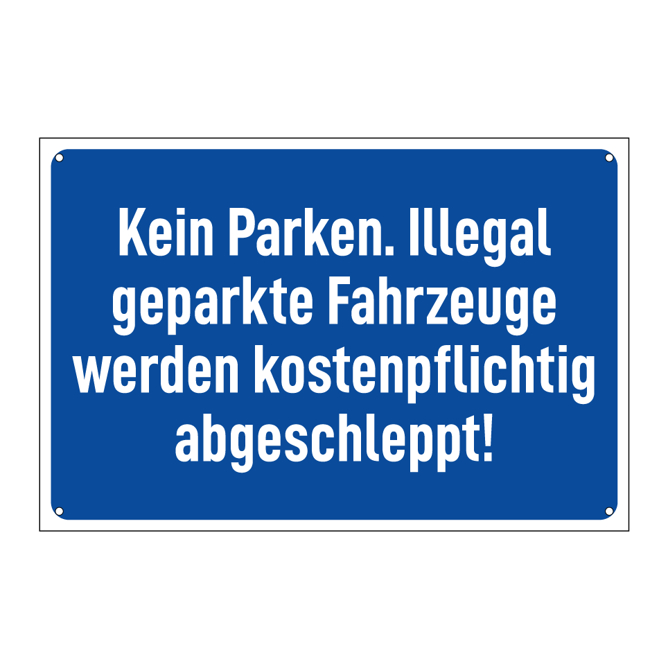Kein Parken. Illegal geparkte Fahrzeuge werden kostenpflichtig abgeschleppt!