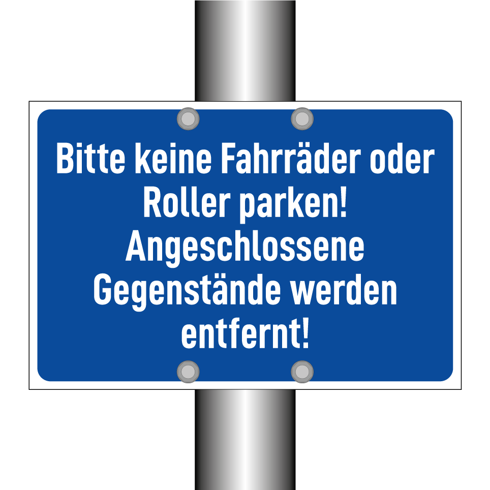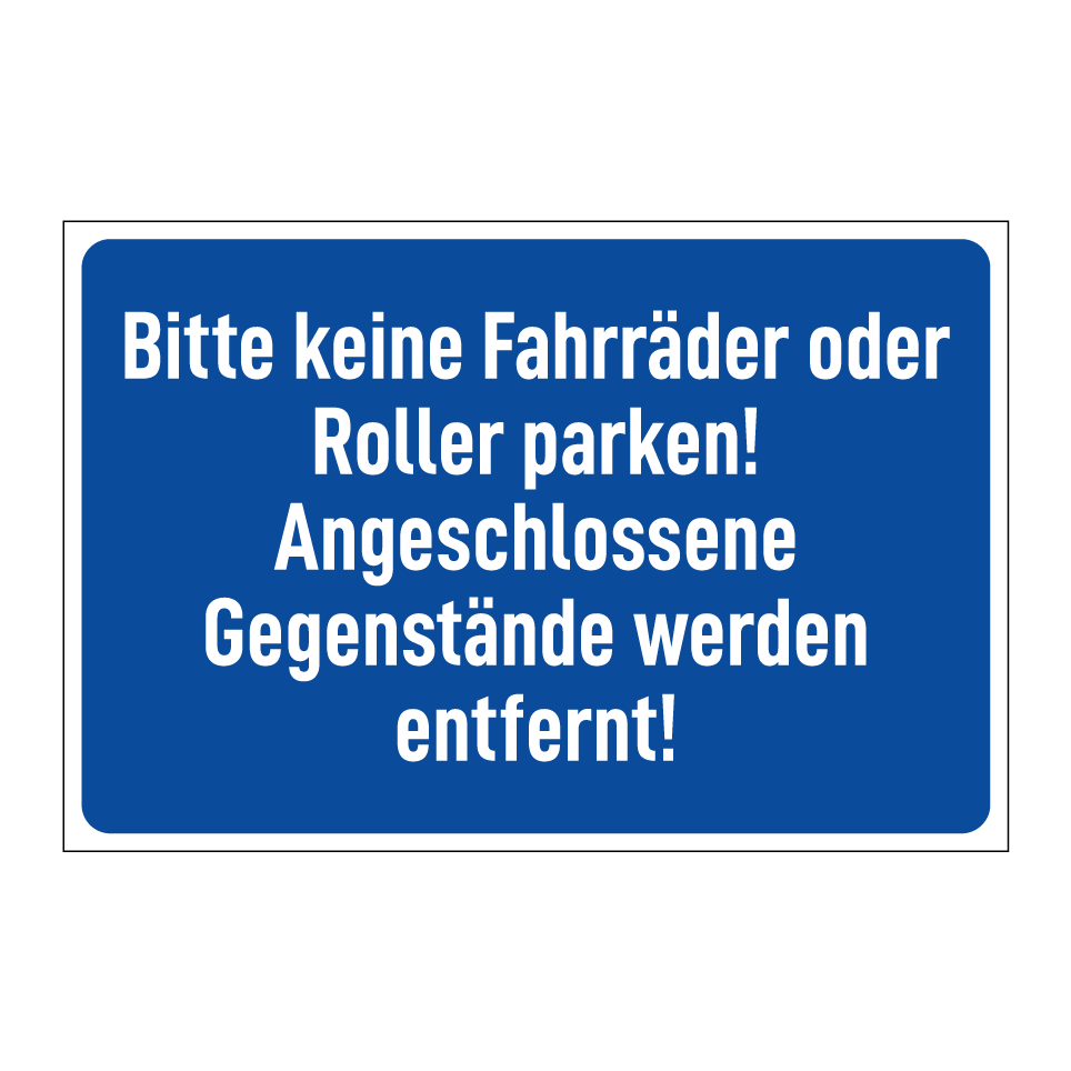 Bitte keine Fahrräder oder Roller parken! Angeschlossene Gegenstände werden entfernt!