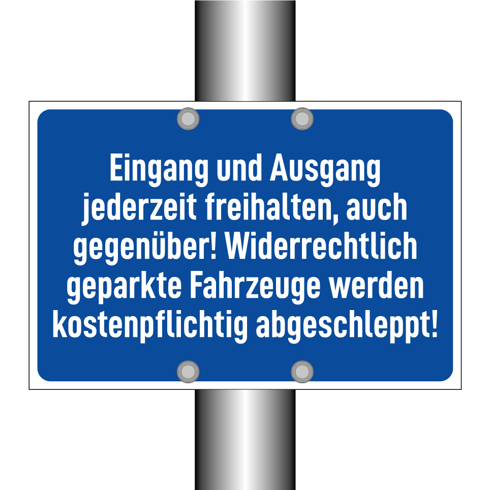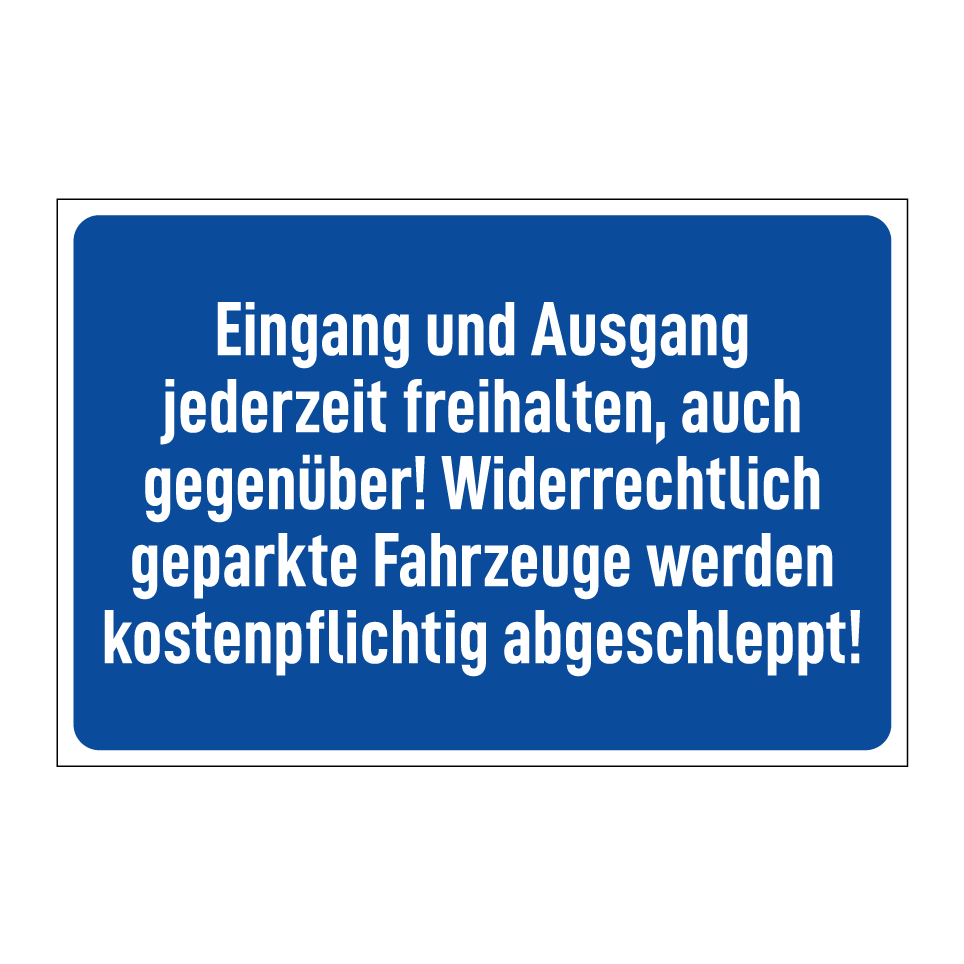 Op de categoriepagina's hieronder vindt u meer producten die lijken op Eingang und Ausgang jederzeit freihalten, auch gegenüber! Widerrechtlich geparkte Fahrzeuge werden kostenpflichtig abgeschleppt!. Klik hieronder om meer producten te ontdekken.