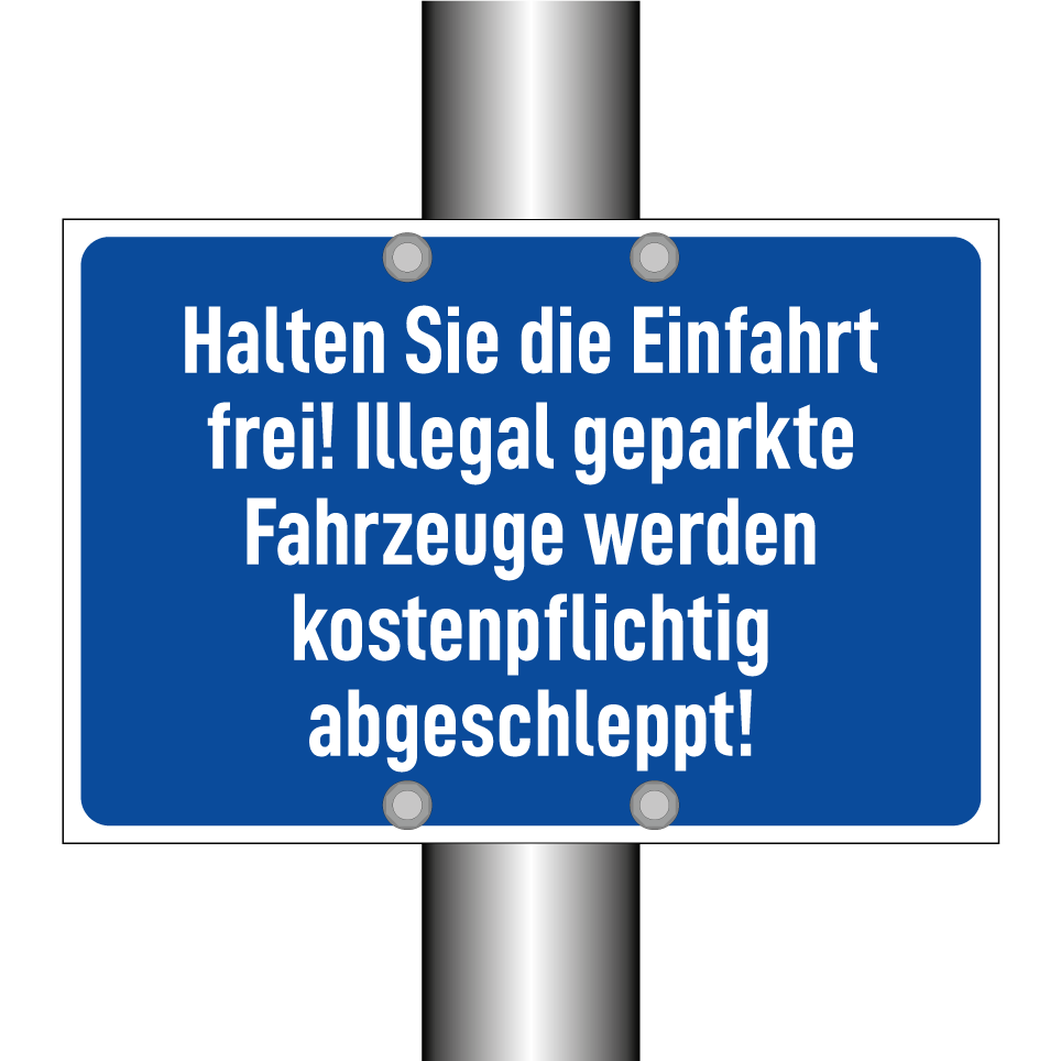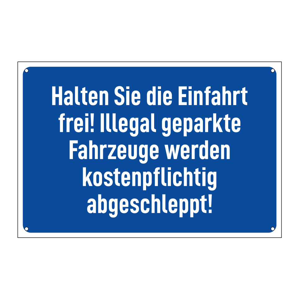 Halten Sie die Einfahrt frei! Illegal geparkte Fahrzeuge werden kostenpflichtig abgeschleppt!