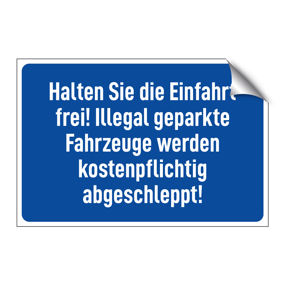 Op de categoriepagina's hieronder vindt u meer producten die lijken op Halten Sie die Einfahrt frei! Illegal geparkte Fahrzeuge werden kostenpflichtig abgeschleppt!. Klik hieronder om meer producten te ontdekken.